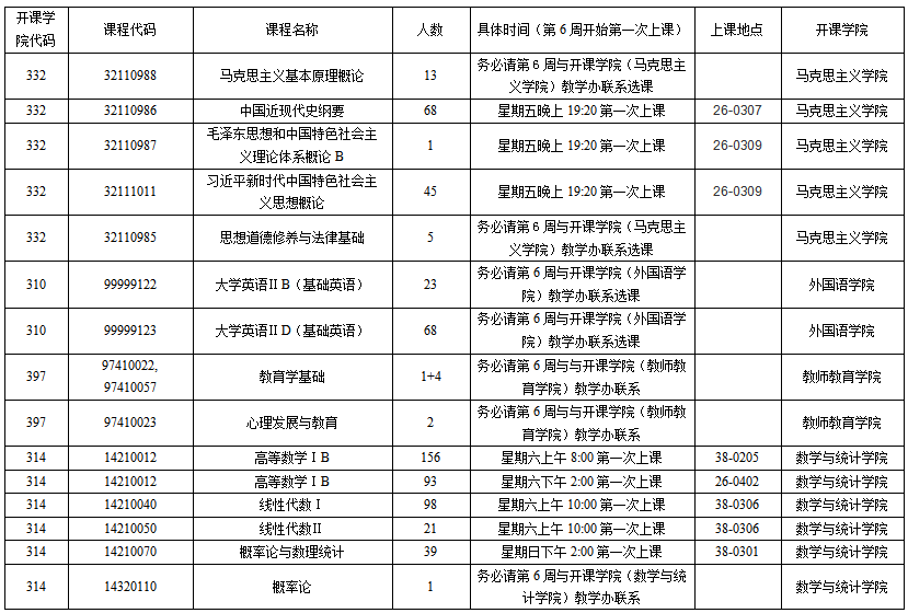 2.不足开班人数的请员工于第6周与开课学院本科教学办以及上课教师联系;