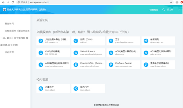 为满足疫情防控期间研究生在校外访问图书资源以及校内信息系统的需要,更好地利用信息化手段支撑“停课不停学”,学校在保留原有VPN系统(奇安信)服务的基础上,紧急调集资源,建设研究生专用VPN系统。进一步方便大家在校外访问学校业务信息系统、CNKI、Web of Science等图书文献数据库。目前该系统已完成安装、调试,从该通知发布之日起开始试运行。
