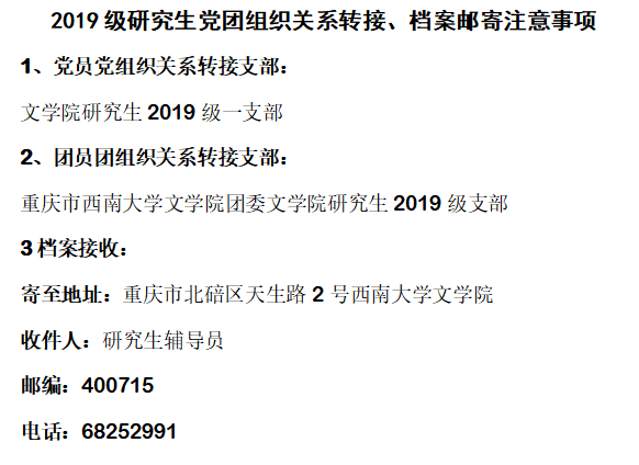 taptap188官网入口2019级研究生党团组织关系转接、档案邮寄注意事项