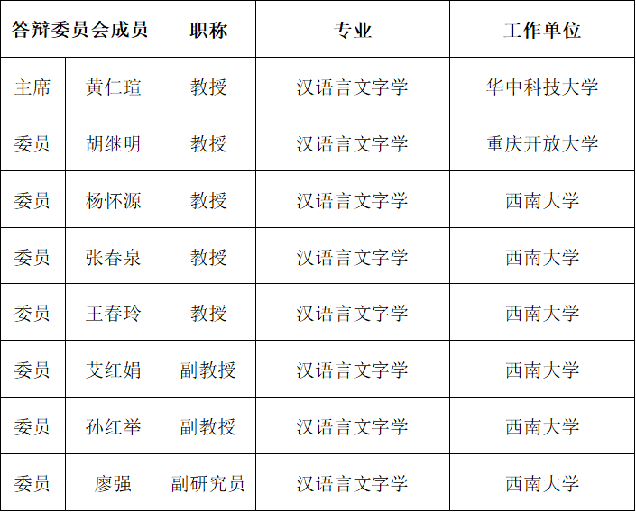 答辩委员会组成