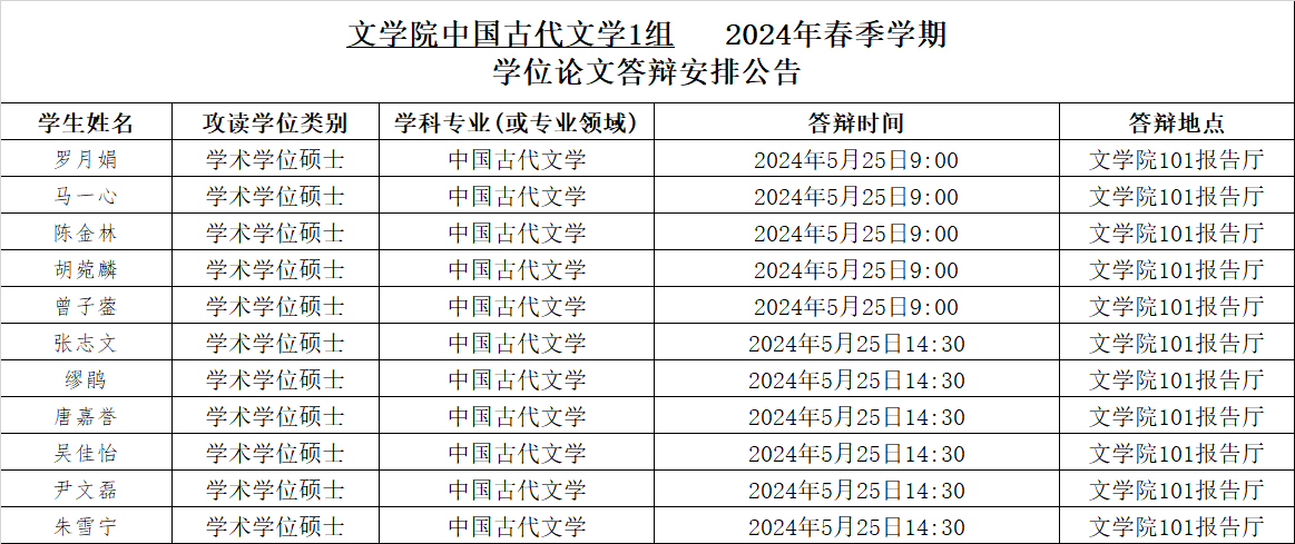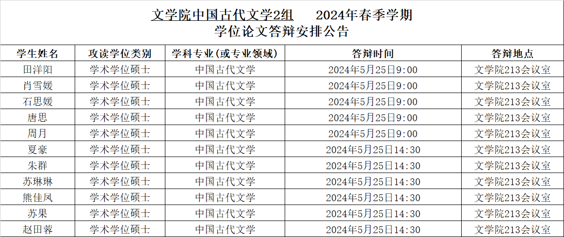 taptap188官网入口2024年春季学期中国古代文学专业硕士学位论文答辩安排公告