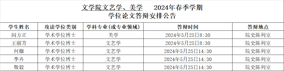 taptap188官网入口2024年春季学期文艺学、美学专业博士学位论文答辩安排公告