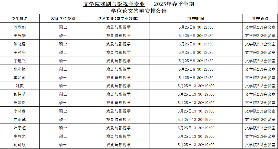 taptap188官网入口戏剧与影视学专业2025年春季学期学位论文答辩安排公告