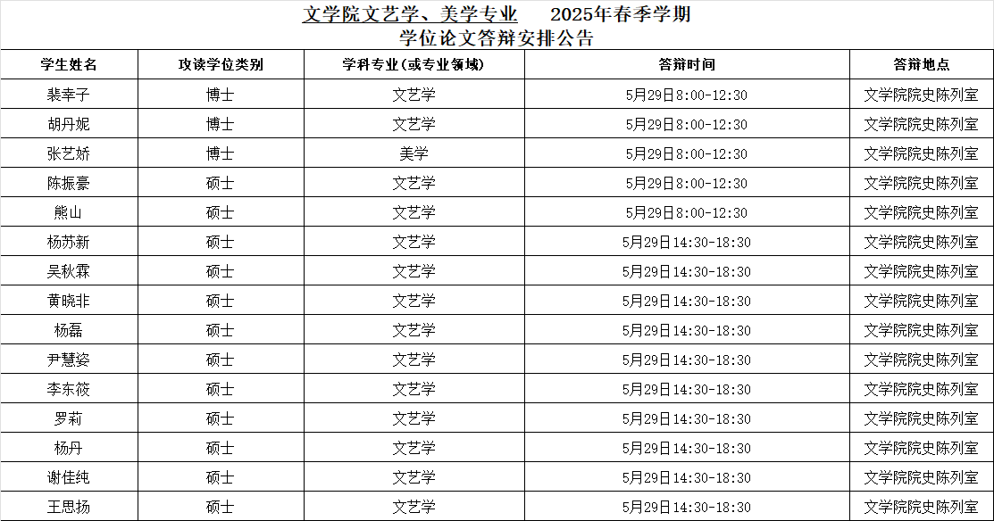 taptap188官网入口文艺学、美学专业2025年春季学期学位论文答辩安排公告