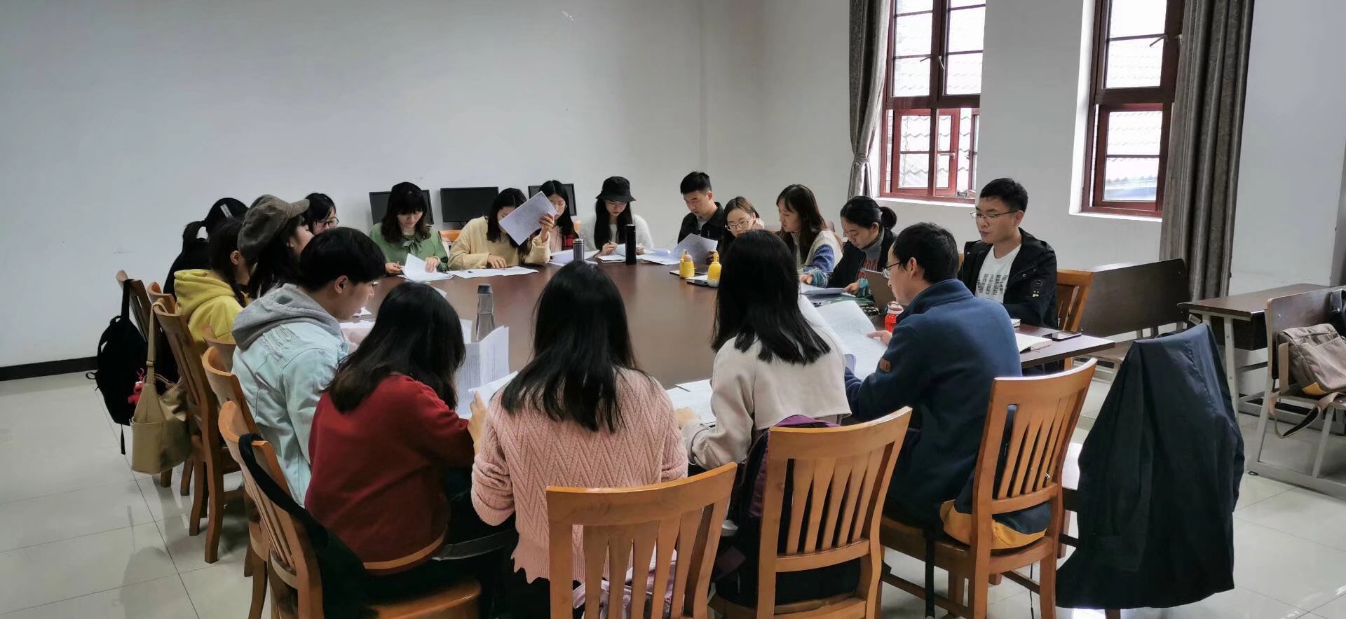 11月2日 “日就月将工作坊”本学年第一次活动。活动对闻一多先生《宫体诗的自赎》、程千帆先生《张若虚〈春江花月夜〉的被理解和被误解》以及张伯伟先生《宫体诗的“自赎”与七言体的“自振”》等作品进行交流讨论。活动由夏志颖副教授引谈,付佳奥老师主持,叶梦圆同学主持。
