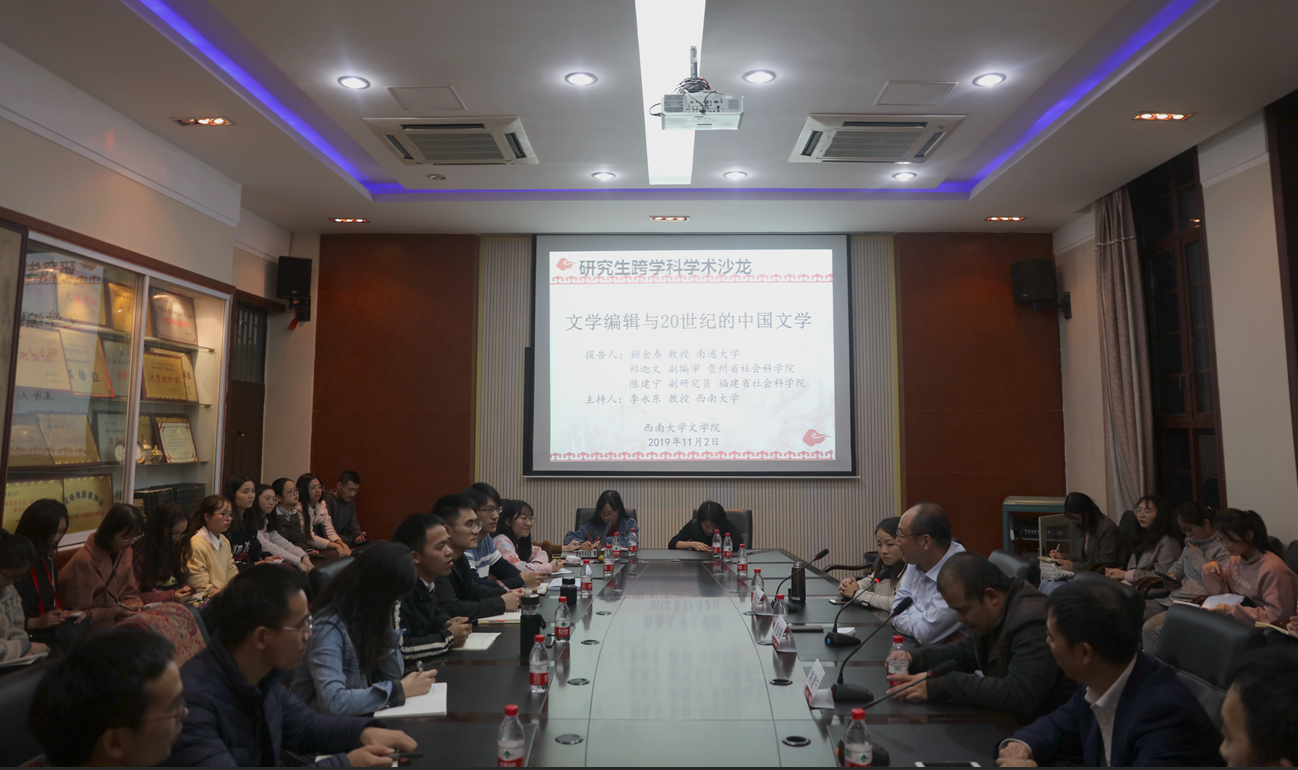 11月2日,南通大学杂志社社长顾金春教授、贵州社会科学院郑迦文副编审和福建社会科学院陈建宁副研究员做客“taptap188官网入口研究生跨学科学术沙龙”,围绕“文学编辑与20世纪的中国文学”进行分享交流。活动由taptap188官网入口李永东教授主持,taptap188官网入口40余位师生参加了此次活动。
