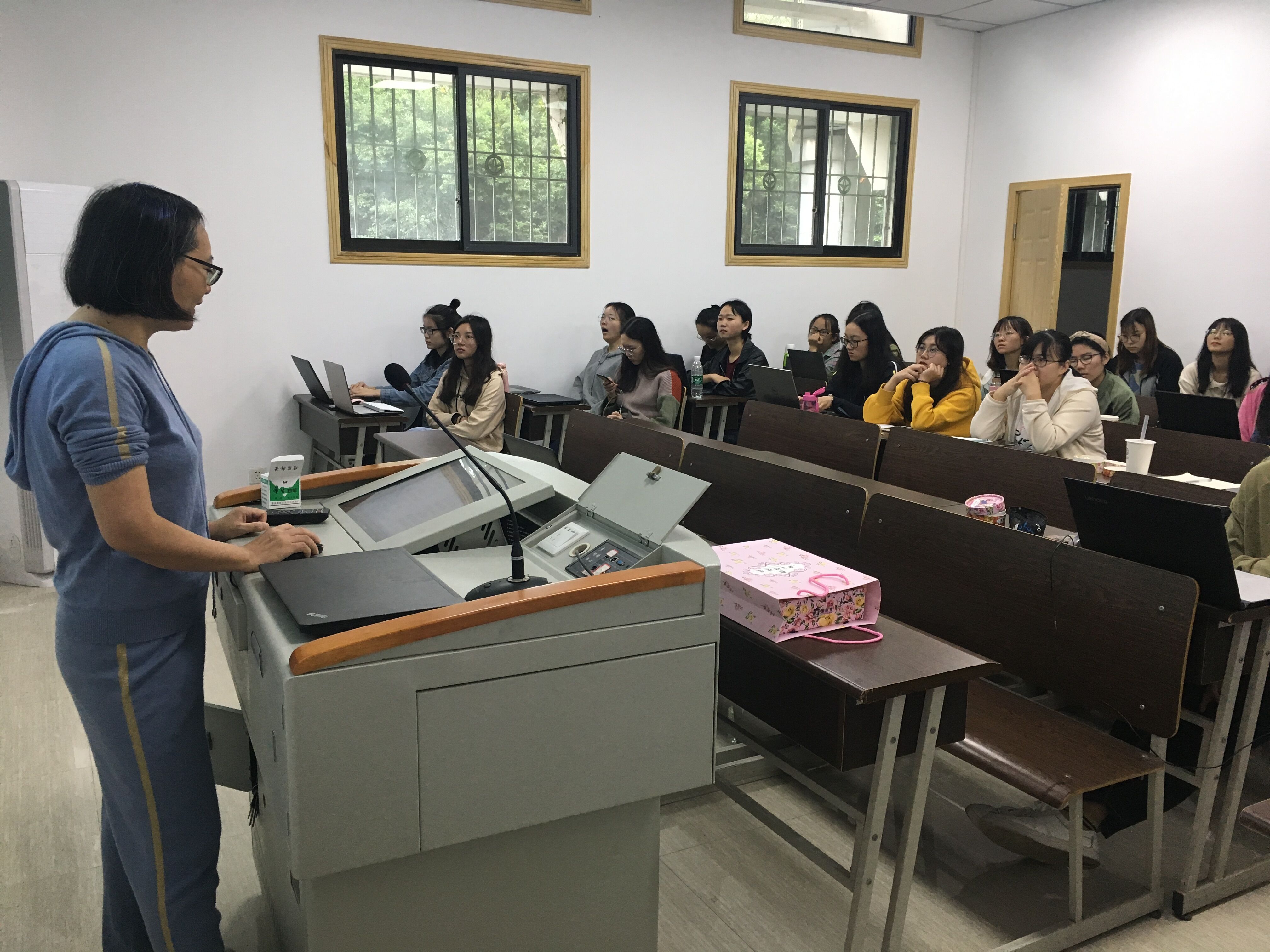 最后,艾红娟副教授带领大家欣赏、查找全唐诗,鼓励同学们按照格律诗的要求创作一首格律诗。
