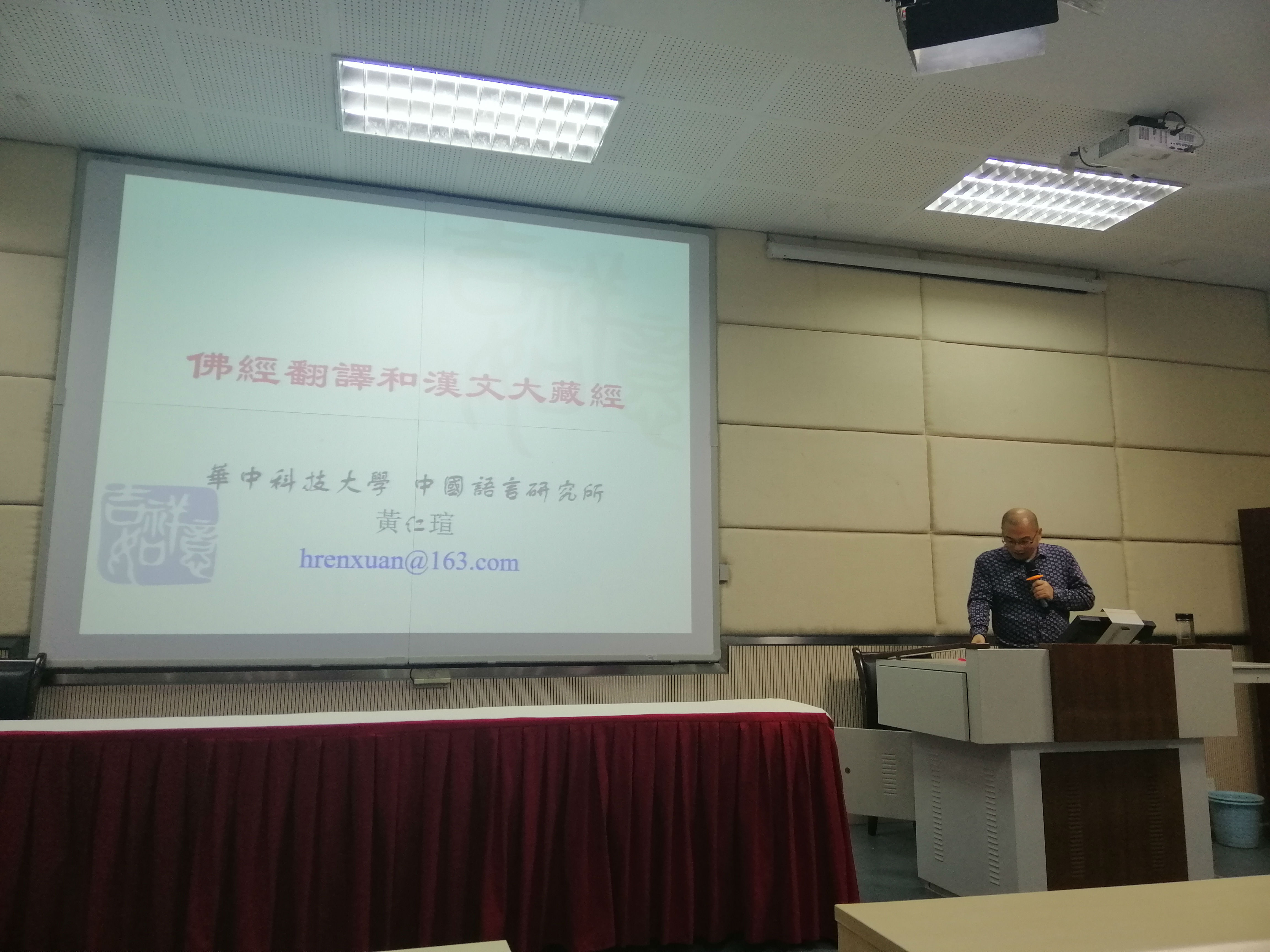11月11日,“西南石刻文献工作坊”本学年第二次活动成功举行。本次活动邀请到华中科技大学、中国语言研究所黄仁瑄教授主讲“佛经翻译和汉文大藏经”。杨怀源教授、廖强副教授出席活动,活动由廖强副教授主持。