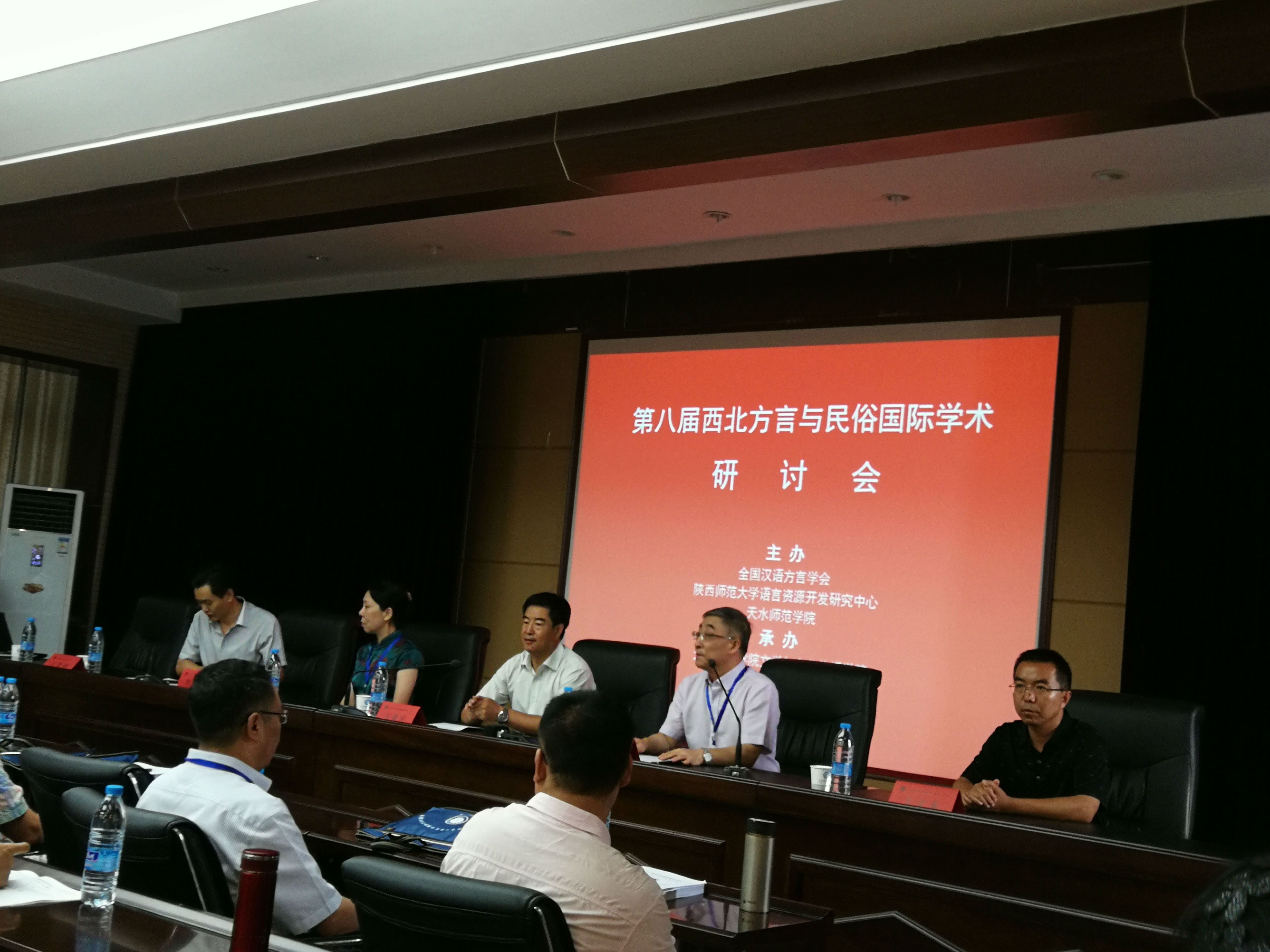 会议开幕式由天水师范学院文学与文化传播学院副经理王贵禄教授主持。天水师范学院副董事长汪聚应教授致欢迎辞,全国汉语方言学会秘书长、中国社会科学院语言研究所方言室主任沈明研究员在致辞中说,过去十四年间,西北方言与民俗研究在邢向东等先生的引领和推动之下,在成果的数量和质量、课题或项目的层次和人才队伍的建设方面取得了长足进步,并使跨省区合作成为一种研究模式,在方言学界的影响越来越大。陕西师范大学语言资源开发研究中心主任邢向东教授在致辞时对西北方言与民俗研究也提出了相关建议。