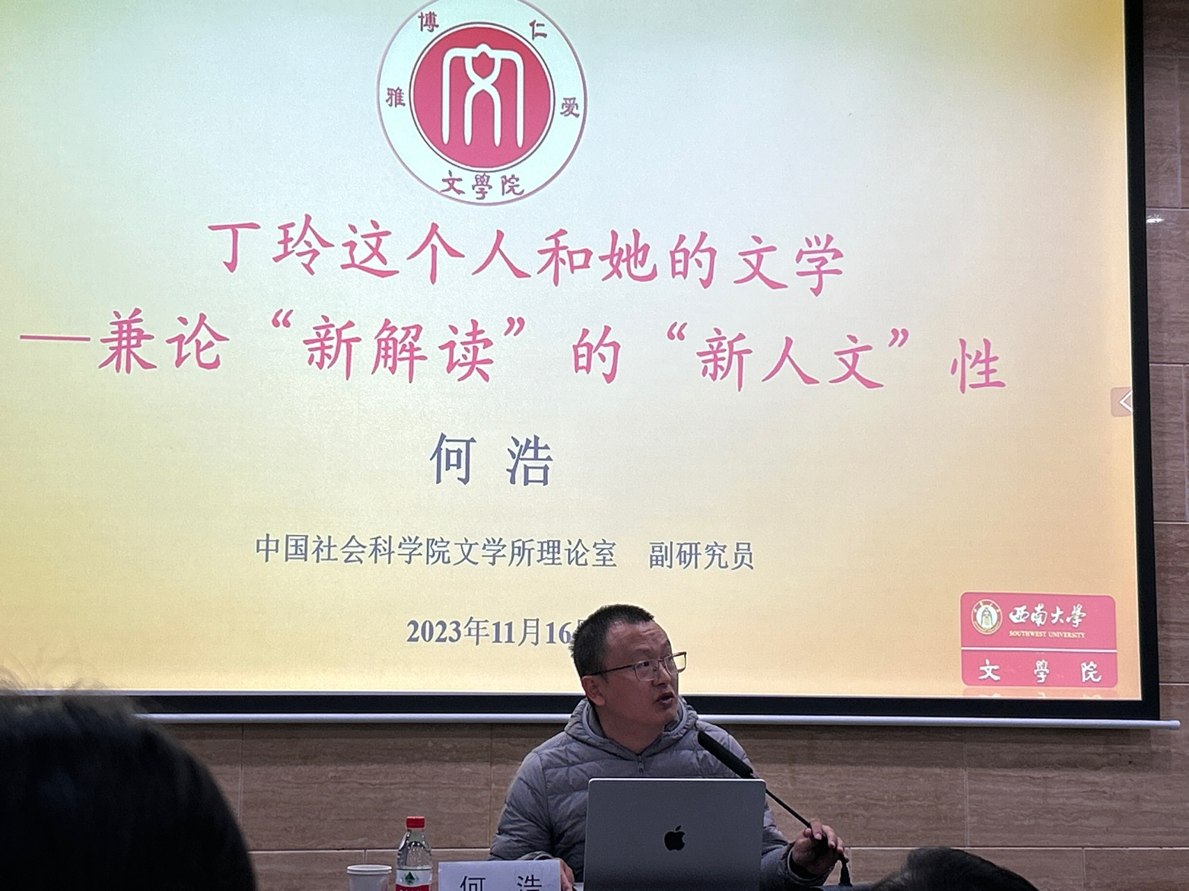 11月16日,中国社会科学院何浩副研究员做客taptap188官网入口名师讲坛,带来题为“丁玲这个人和她的文学——兼论‘新解读’的‘新人文’性”的讲座。讲座由taptap188官网入口张武军教授主持,taptap188官网入口相关专业师生参加了本次讲座。