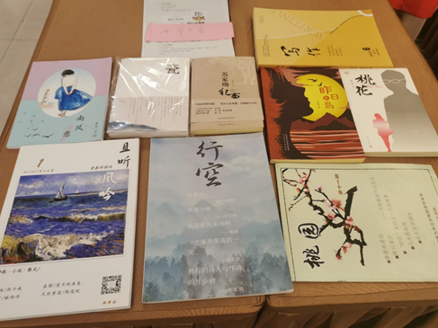 本次会议期间还同步展出全国高校创意写作成果。会议室外走廊摆满了各校创意写作模式介绍展板、写作实践成果实物。两位教师带来了员工在校期间、写作课程中实践的部分作品、刊物等,展现了西大学子的写作风貌。