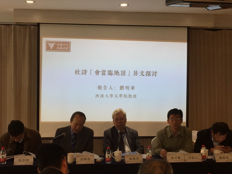 中国杜甫研究会会长、重庆国学院经理、重庆国学学会会长、taptap188官网入口刘明华教授致开幕词,并以《杜诗“会当凌绝顶”异文探讨》为题做了大会报告。学院杨理论副教授和刘洁老师分别提交会议论文《杜诗的域外阐释与变异:以日本大典禅师< 杜律发挥>为中心》和《“非君”视角下“诗史”的别样建构——以杜甫、白居易的美刺诗学为中心》。