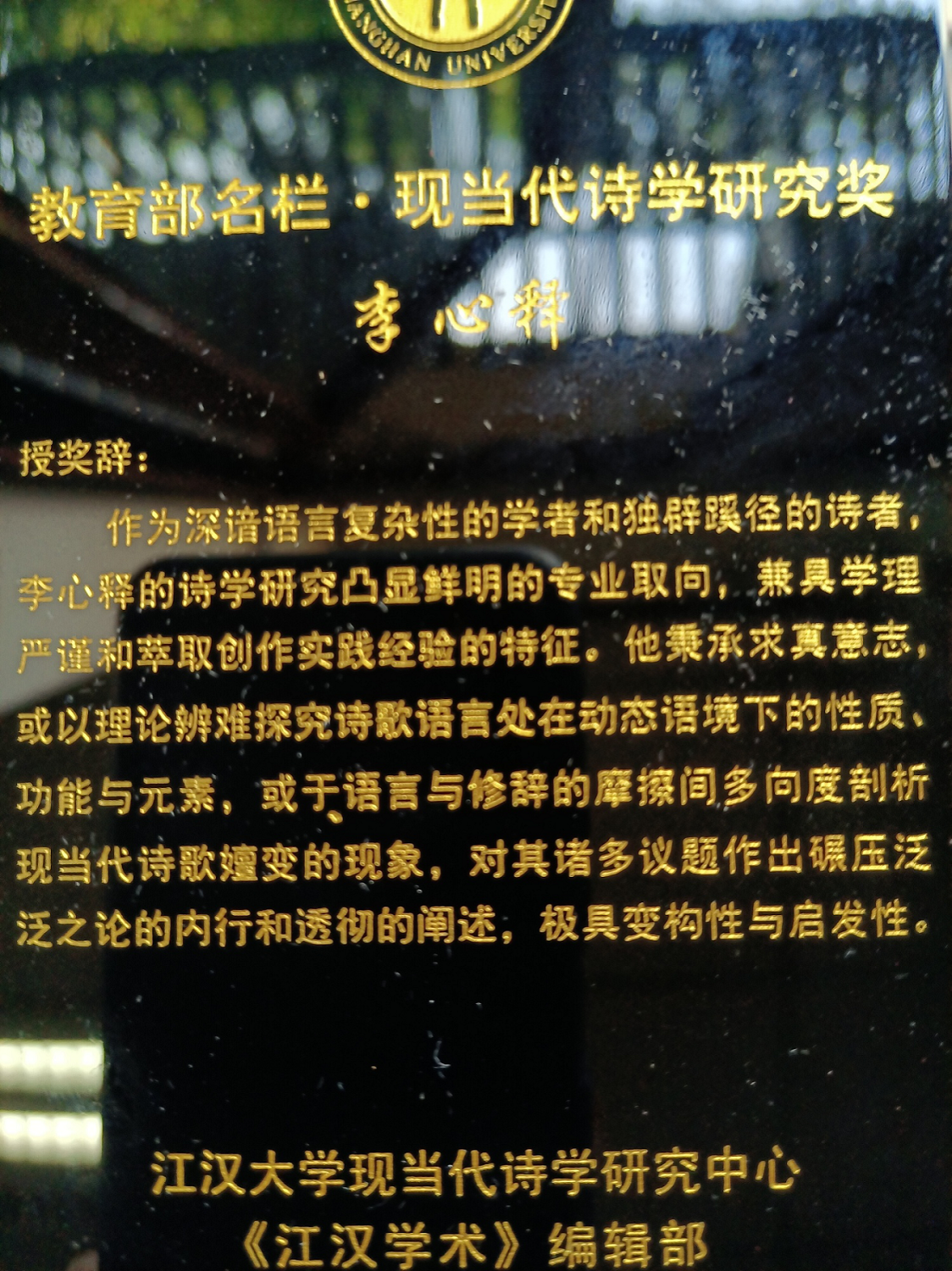 2023年8月16日至17日,taptap188官网入口李心释(李子荣)教授参加由上海大学taptap188官网入口和江汉大学期刊社联合主办的“21世纪现当代诗学探索进路”高峰论坛暨“教育部名栏·现当代诗学研究奖”颁奖典礼。李心释教授因其当代诗学研究尤其是诗歌语言研究的成就获得了现当代诗学研究奖,由著名诗人、清华大学教授西渡先生和云南大学教授李海英女士为其颁奖。论坛围绕“当代诗的个体性与公共性、诗意的变迁与边界感、当代诗的日常维度与事件维度”等主题展开了四个单元时间的热烈讨论。