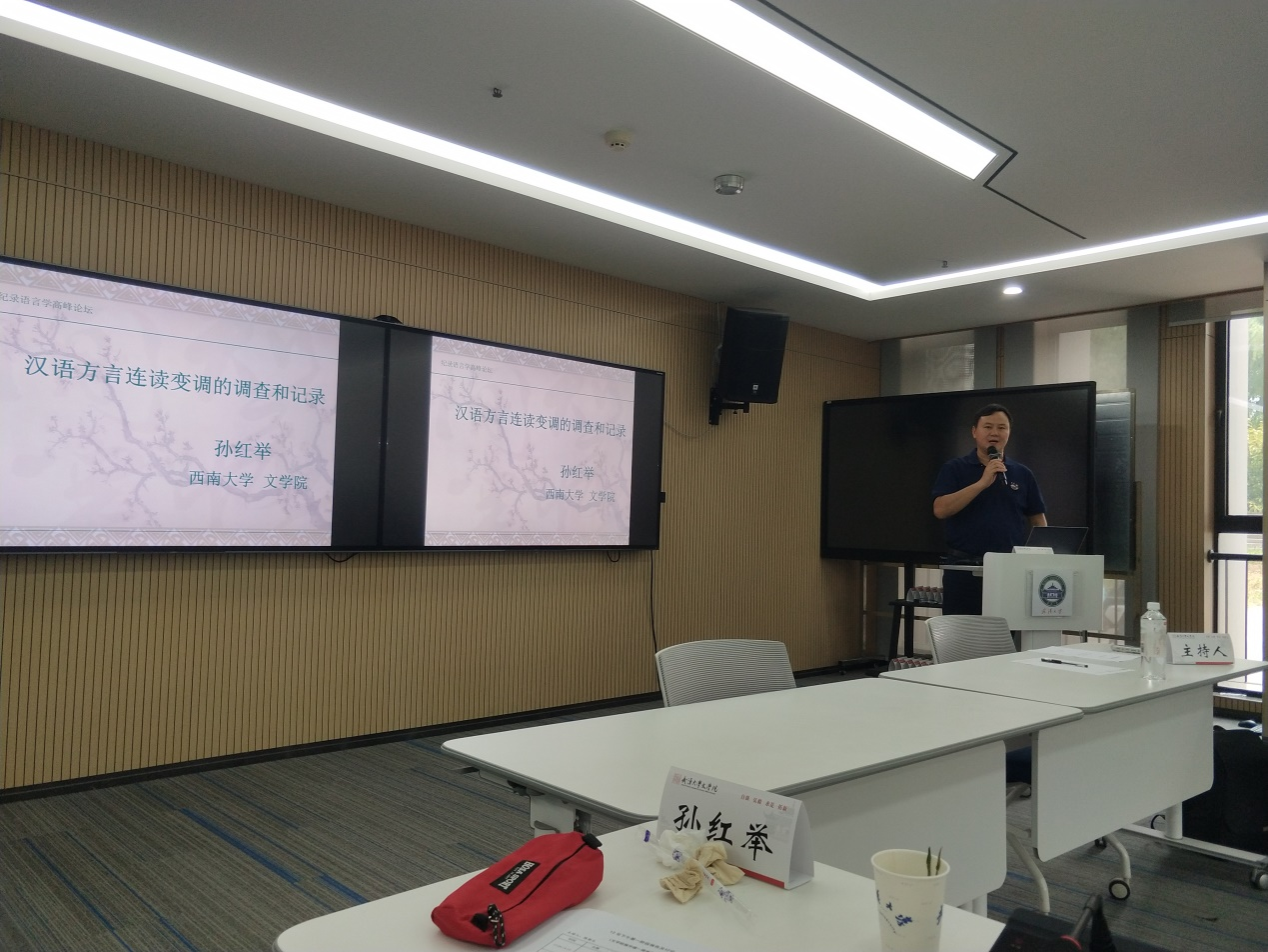 2024年10月11日至13日,由武汉大学taptap188官网入口主办的纪录语言学高峰论坛在武汉大学taptap188官网入口举办,来自中国社会科学院、武汉大学、中山大学、厦门大学、上海外国语大学、宁波大学、云南民族大学等10多个单位的三十余名专家学者出席了圆桌论坛,taptap188官网入口孙红举老师应邀参加。专家学者们就中国境内方言和民族语言的语言记录和田野调查方法问题进行了广泛而深刻的交流和探讨。会中,孙红举老师以《汉语方言连读变调的调查和记录》为题,论述了汉语方言连读变调调查和记录的重要性、复杂性以及调查记录的方法和原则,并同与会专家学者积极进行了沟通和交流。