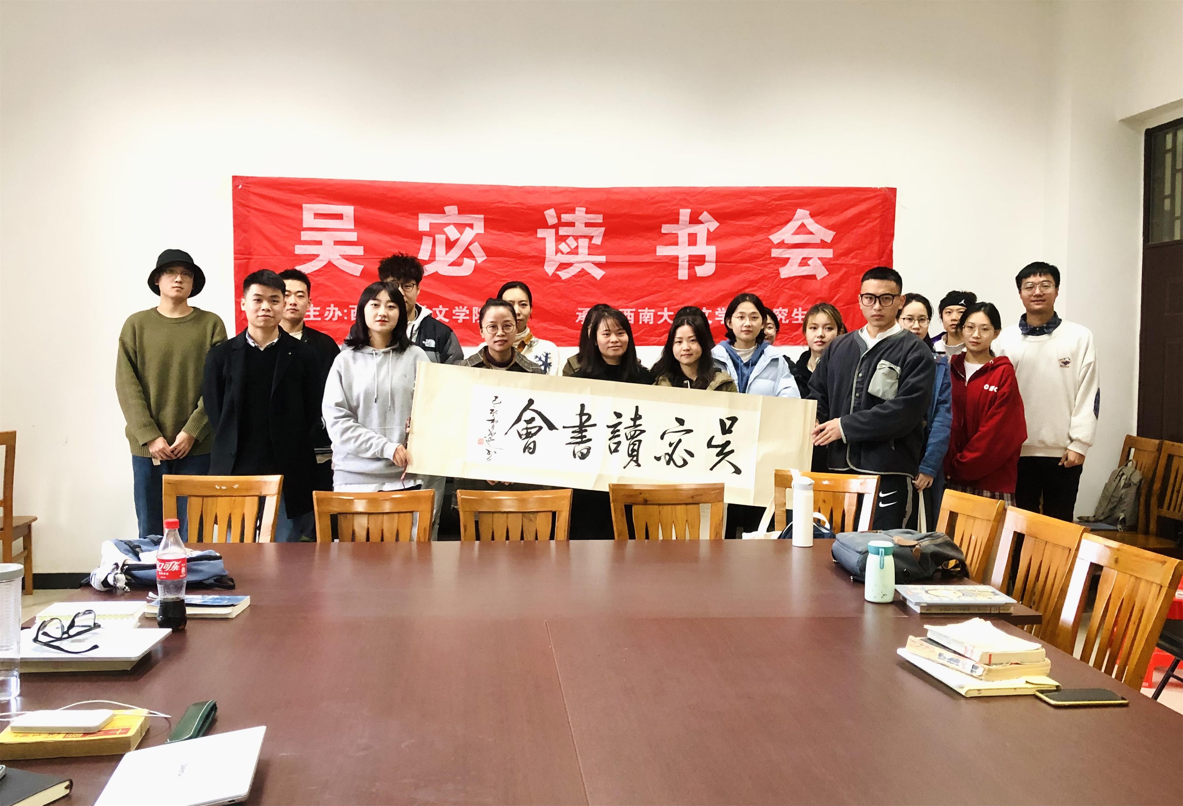 11月26日下午,taptap188官网入口研究生会举办第十一期“吴宓读书会”读书交流活动。本期读书会邀请到taptap188官网入口邝明艳老师担任指导嘉宾,taptap188官网入口学术部干事郭笑岩同学主持活动。
