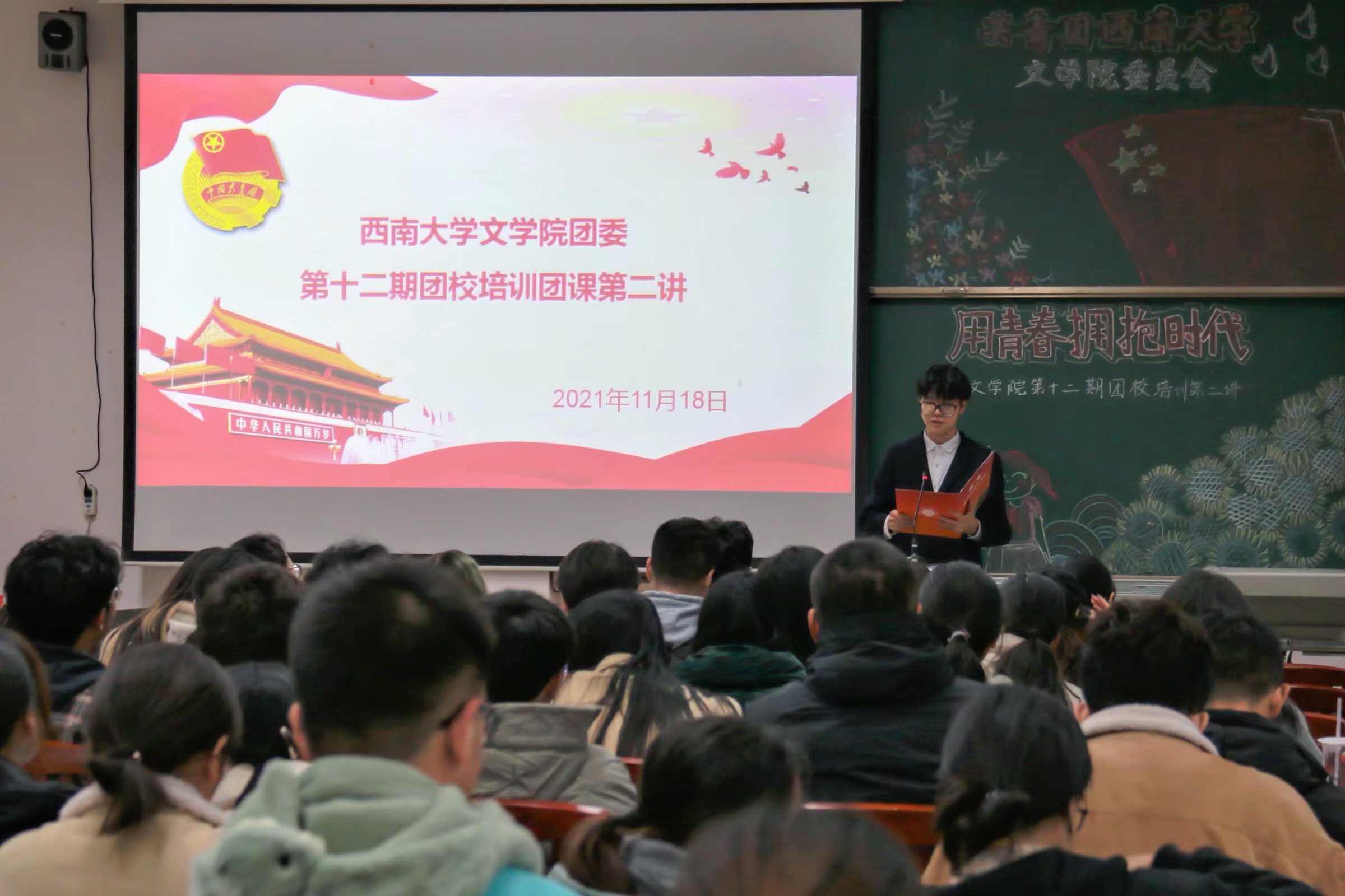 在团歌慷慨激昂的旋律中,团校培训第二讲正式拉开帷幕。何治涛从学术方面阐释了对文学艺术的见解,分享了提升艺术素养和课程学习能力的方法,并与参训学员进行了互动交流。胡伟婧从学习学业、员工工作两个方面详细阐释了如何高效规划老员工活,鼓励大家勇于实践、充分准备,以饱满的热情对待学习和工作。