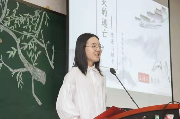 本次活动由陈晓蓉和刘娟主讲。活动以一个隐逸文化相关视频引入。陈晓蓉解释了隐逸文化的基本含义与其发展的四个阶段,使同学们对隐逸文化有了基本的了解;又鉴赏了有关隐逸文化的诗歌作品,深入阐释了古人的隐逸情怀,使同学们对隐逸文化有了初步的感悟。随后,文宣团成员张如楠、覃红、胡锦洋与陈庥骅以情景剧演绎人生,带来了一场现代版的桃花源之游。