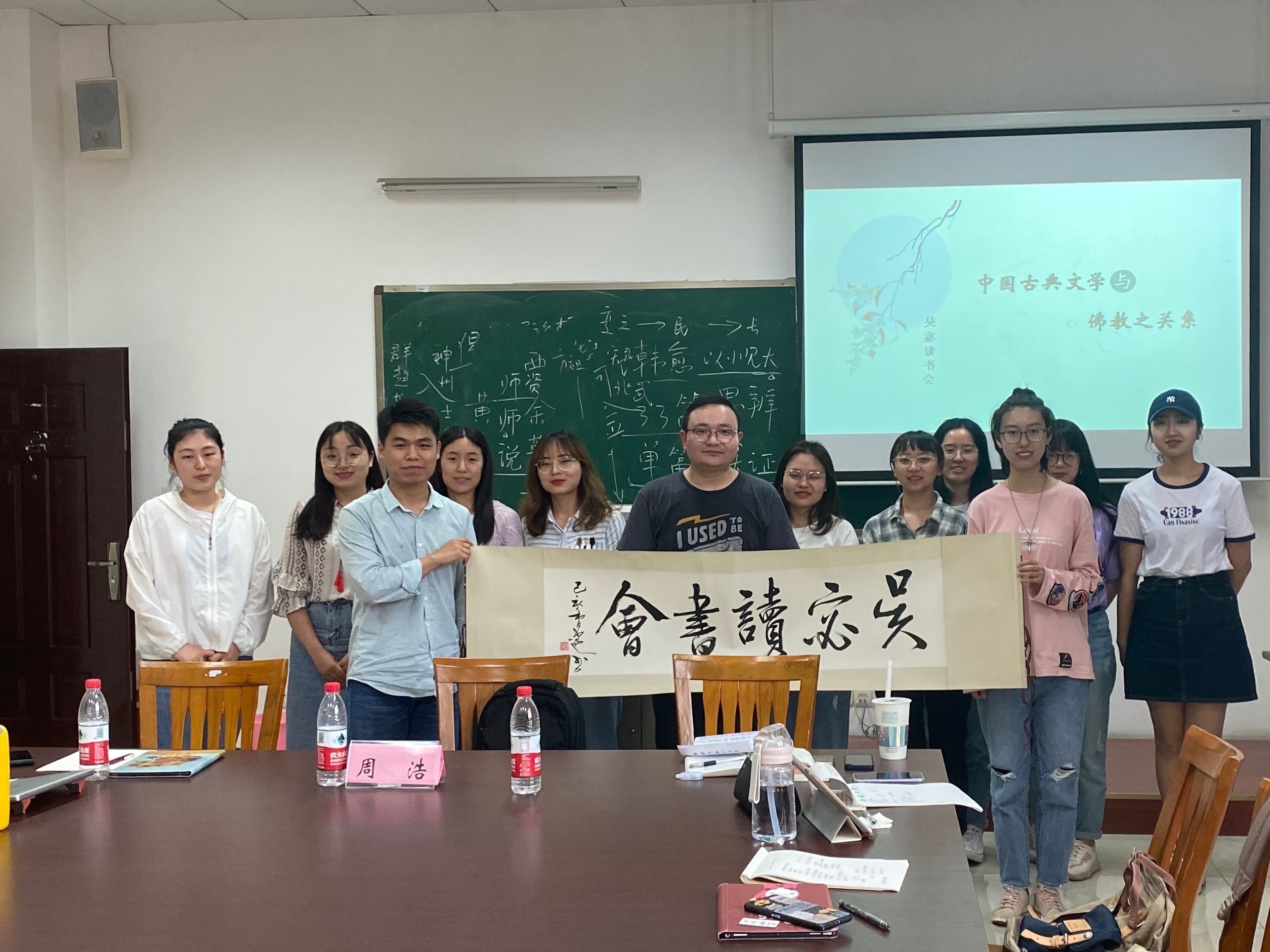 本期读书会的主题为“中国古典文学与佛教之关系”。周浩老师从佛教与中国文化、文学的概况为出发点,提出了对陈允吉所著学术论文集《古典文学佛教溯源十论》的理解。他认为,佛教的传入刺激了本土道教的发展,对盛唐诗歌、俗讲变文、文学理论、语言学乃至清末民初革命都有重大影响。他希望当代研究生做学问时应学习陈允吉“纵深开掘”的研究方法,培养自身学术研究的问题意识,寓义理于考据之中。