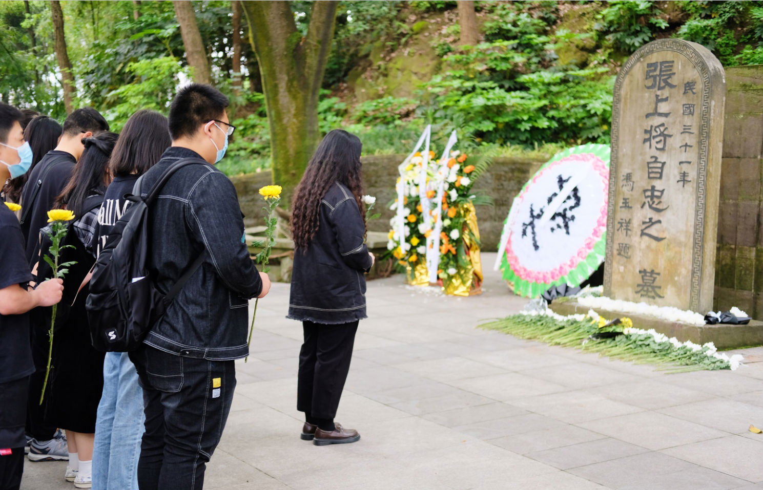 首先由队员代表致哀悼辞。“披肝沥胆身殉志,毅魄英风映苍穹,我们怀着十分沉痛的心情,带着最真诚的敬意,深情悼念曾经在这里战斗过,为了抗日事业而永远倒下的张自忠将军。”随后大家依次为烈士献花、鞠躬,集体默哀一分钟。