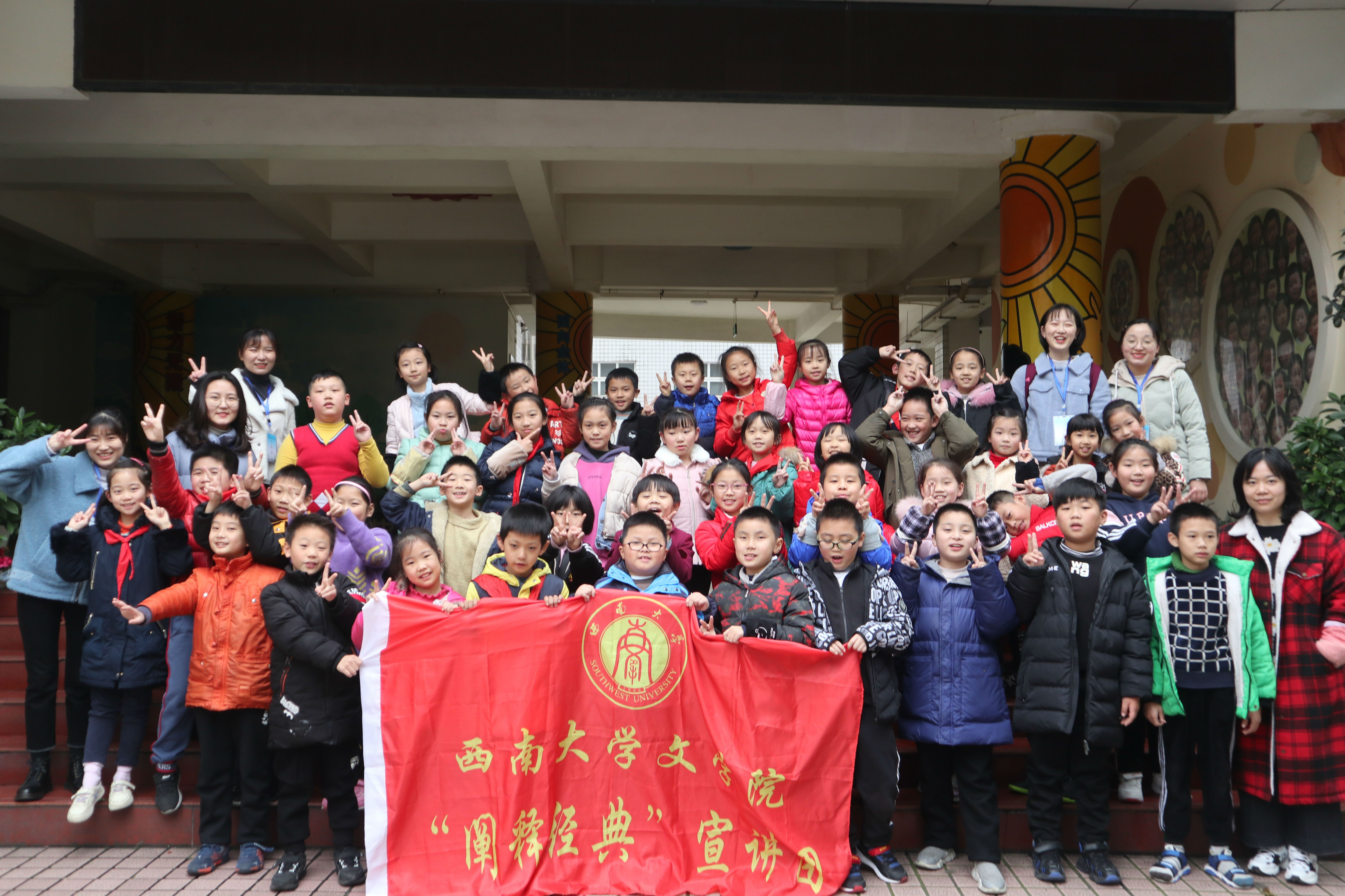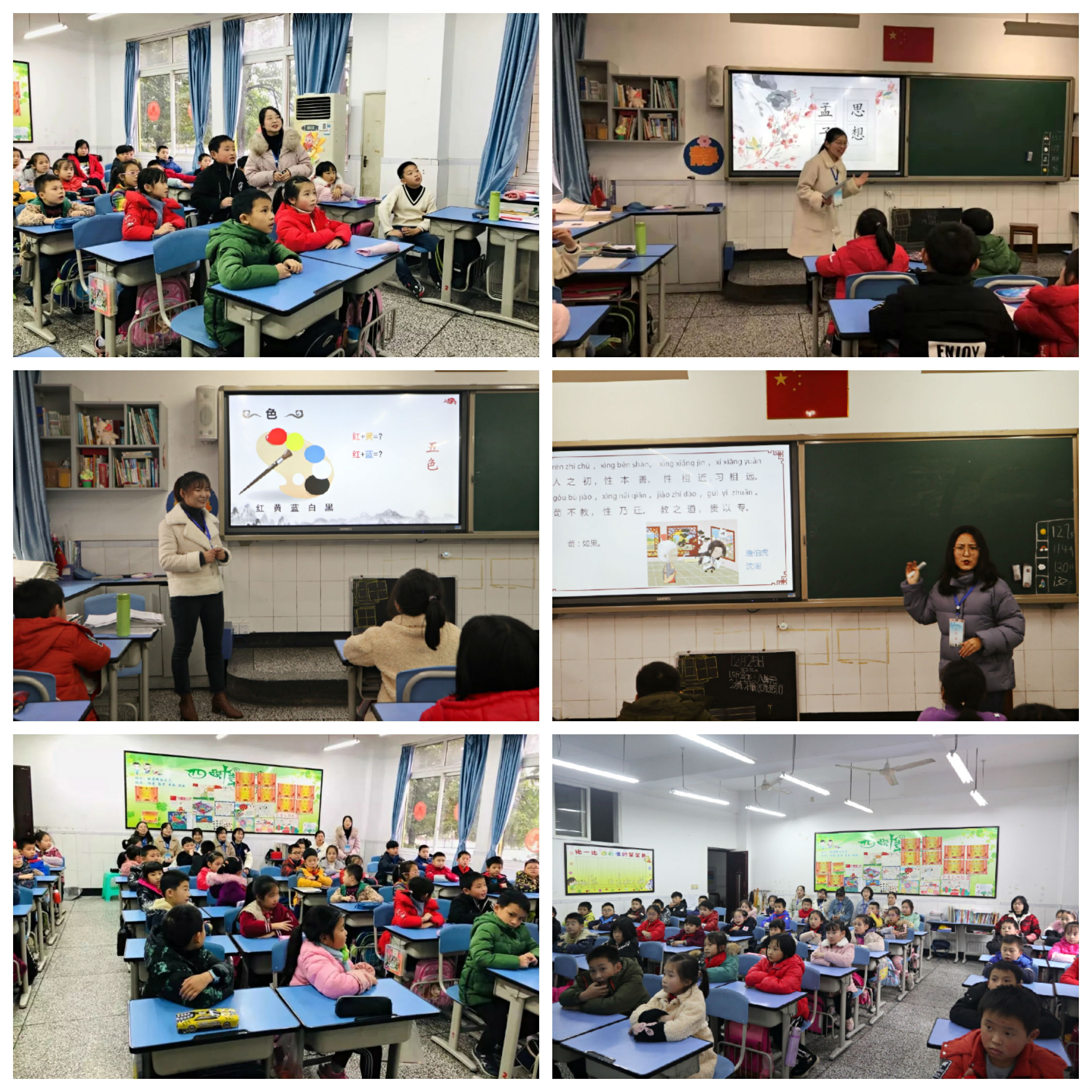 宣讲团于12月18日和12月25日两次走进北碚区朝阳小学三年级(3)班开展活动。活动秉持“在孩子们心中播撒一颗国学种子”的信念,让国学启蒙走进校园,蕴化于心。第一次宣讲内容主要是《世说新语》中“雪夜访戴”和“咏雪”两则小故事以及《孟子》中“生于忧患,死于安乐”的讲解。第二次宣讲则为小朋友们解读了《三字经》与《孙子兵法》两部传统经典作品。