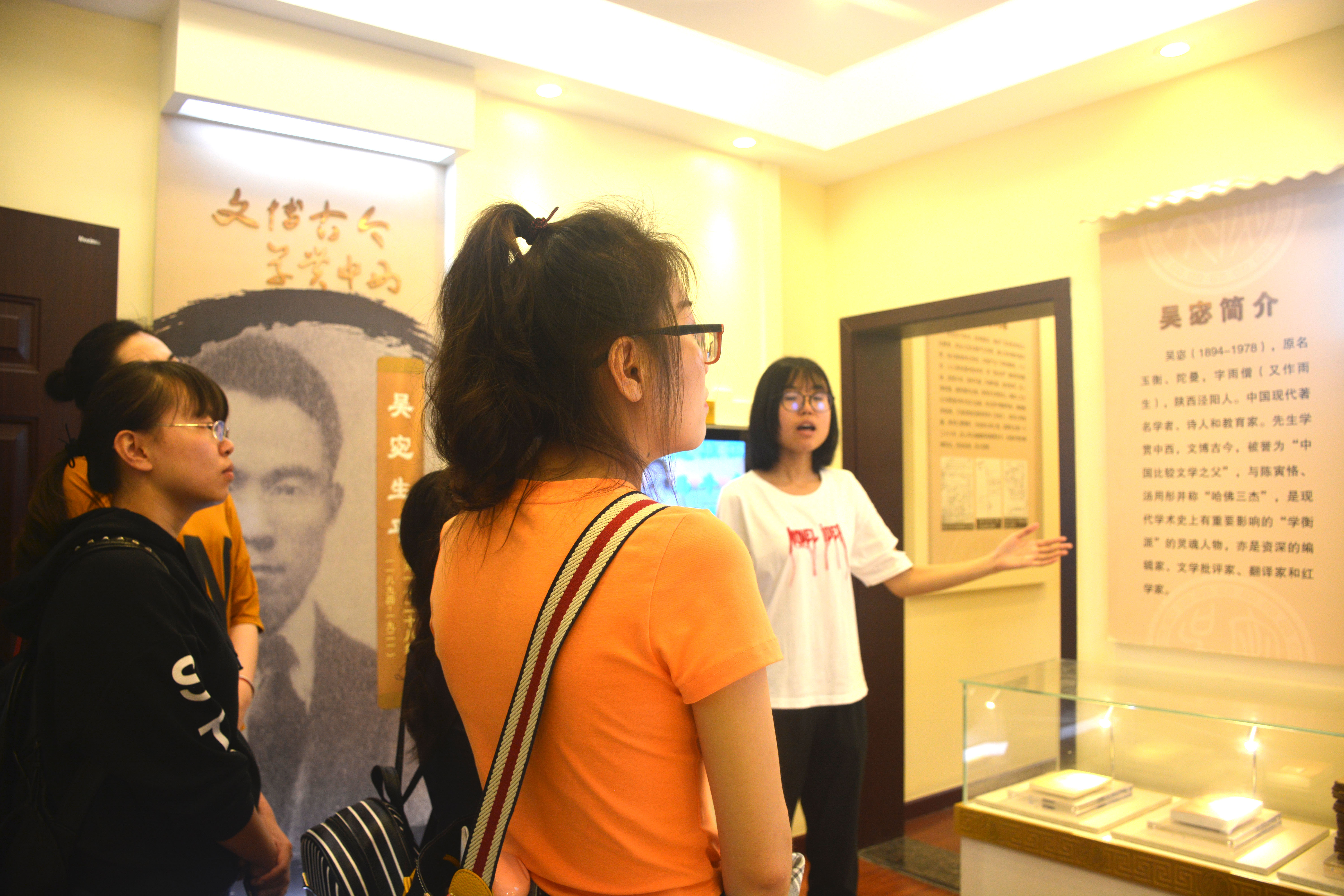 随后,活动地点转向位于博雅广场一侧的吴宓旧居陈列室。陈列室内包括吴宓研究中心、学术交流中心、吴宓生平陈列展等,展品涵盖吴宓的译作、红学著作、部分书信、手稿等,完整地再现了这位国学大师的一生。在taptap188官网入口讲解员的带领下,同学们对吴宓先生的求学经历、教育思想和学术成就等有了全面而系统的了解,更加深刻地感受到吴宓先生人文精神和教育思想的可贵、可敬。