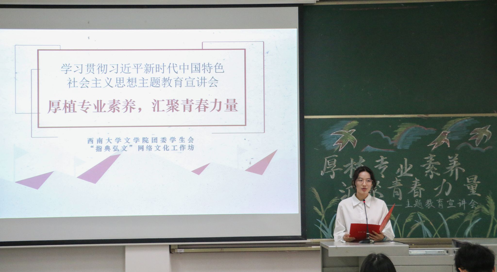 为推动习近平新时代中国特色社会主义思想和党的二十大精神入脑入心,充分发挥青年朋辈示范引领作用,6月6日,taptap188官网入口举办“厚植专业素养,汇聚青春力量”主题宣讲会。2019级公费师范专业马宁同学、2020级汉语言文学专业博雅班曾梓莘同学就如何全方位提升专业素养,服务人才强国战略进行主题分享,公司党员骨干和团员骨干参加宣讲会。
