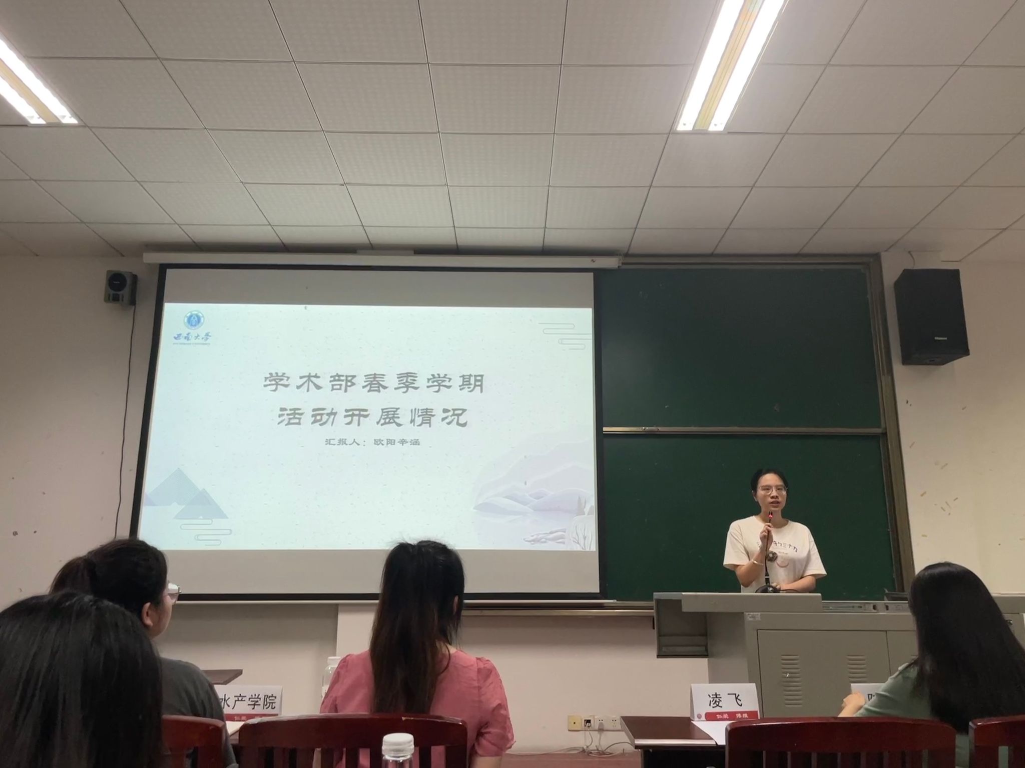 6月9日下午,taptap188官网入口举行第十五届研究生会春季学期述职评议会。公司党委副书记 纪委书记陈玥、研究生辅导员凌飞出席述职大会,水产学院主席团代表李文郁、taptap188官网入口研究生代表参与本次述职评议会。本次活动由taptap188官网入口研究生会主席团成员陈钰涵主持,taptap188官网入口研究生会全体成员参加。