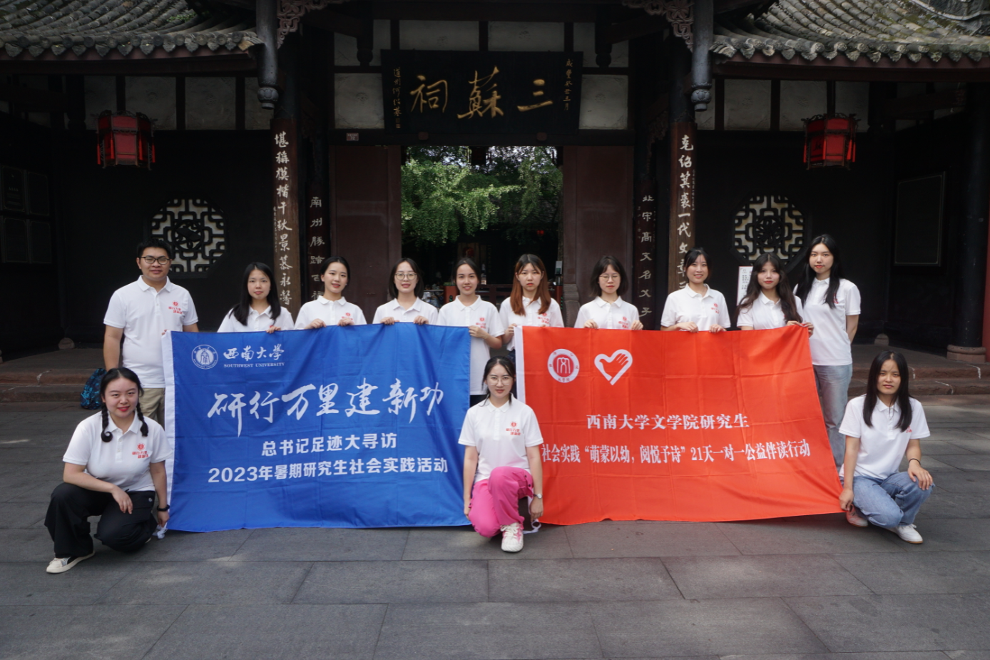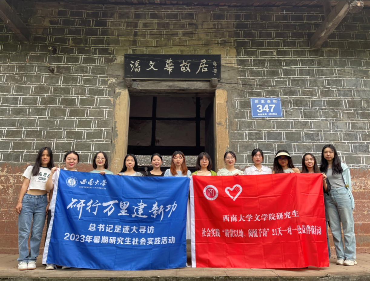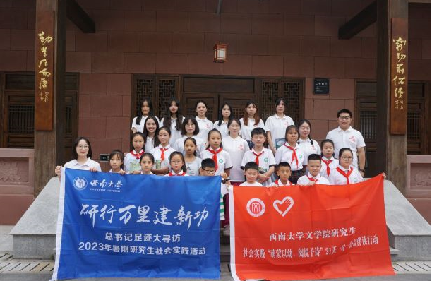 为深学笃行党的二十大精神,推动学习贯彻习近平新时代中国特色社会主义思想走深走实,taptap188官网入口动员研究生开展以“研行万里建新功”为主题的暑期社会实践活动。taptap188官网入口积极响应号召,在taptap188官网入口研究生导师曹建教授、张兴成教授,辅导员凌飞老师的带领下,于7月19日至21日组织12名研究生追寻习近平总书记考察调研的足迹,前往四川眉山开展第五届“萌蒙以幼,阅悦予诗”21天一对一公益伴读行动。本次研究生“一对一”帮扶员工阅读能力的培养计划,把“文化振兴”与“研学实践”相结合,力求深化定向结对互动、强化育人目标引领,帮助乡镇地区员工养成良好的阅读习惯,助力仁寿县文宫镇文化振兴。同时,三苏祠研学活动培养了同学们的核心人文素养与精神品质,激励她们挺膺担当,以更好落实“时代新人铸魂工程”。
