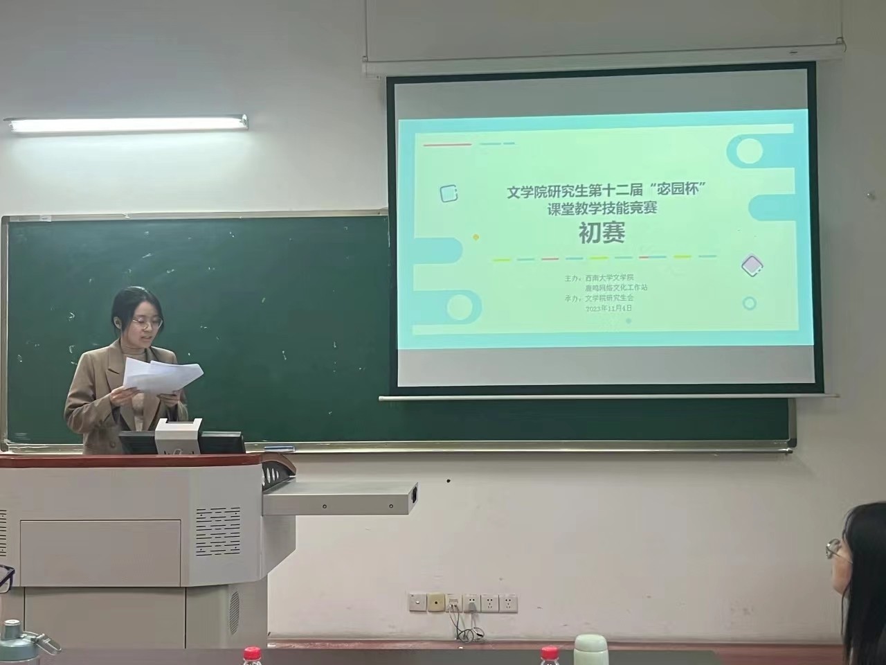 11月4日下午,taptap188官网入口举办第十二届“宓园杯”研究生课堂教学技能竞赛初赛,比赛由taptap188官网入口研究生会主办。本次比赛由往届优秀参赛选手和有丰富面试经验的李磊、陶欣航、谢思等9名研究生担任评委,共45名研究生参赛。参赛选手被划分为三个小组,各小组的比赛分别在taptap188官网入口三个教室同时进行。