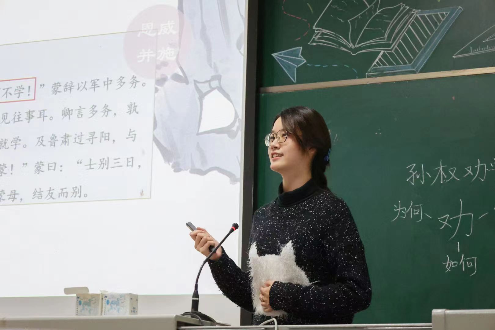 本次比赛中,各位参赛选手依次上场进行10分钟的模拟课堂教学。教学内容涉及诗词、古文、新闻评论、散文等,选手们展现了扎实的专业知识储备和良好的教学风采。随后,王浩老师、包凯俐老师从教学内容、教学方法、课堂表现等方面对选手们的课堂教学进行了评价,并给选手们提出了宝贵建议:一是在文本细读的基础上设置合理、明确的教学目标,二是立足学情制定适合的教学路径,三是选择聚焦性的提问方式,帮助员工理清思路。
