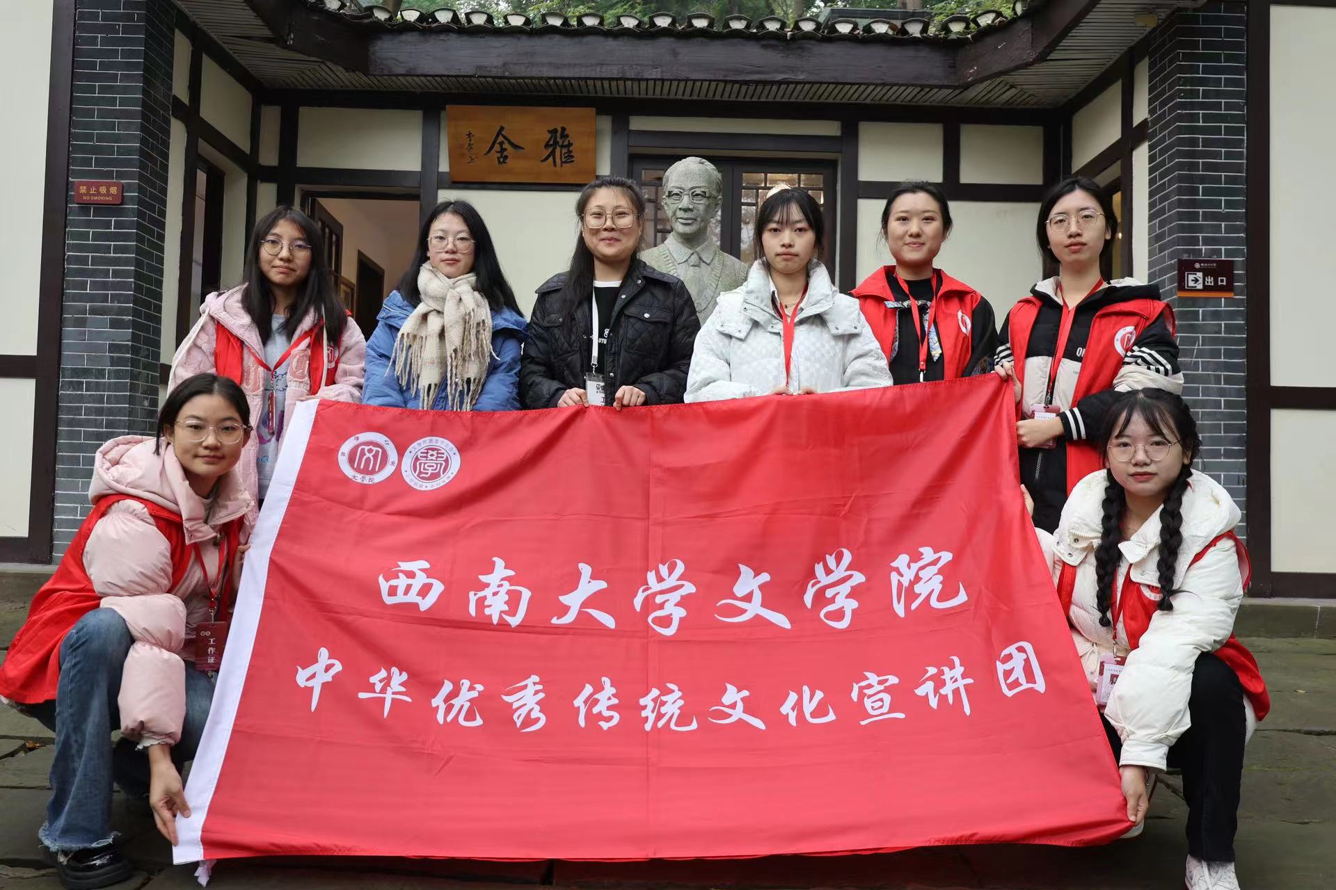 12月9日,taptap188官网入口在梁实秋纪念馆举办“千人一面戴,彩绣锣鼓起”传统文化宣讲会,宣讲团成员及北碚部分小员工参与本次宣讲会。