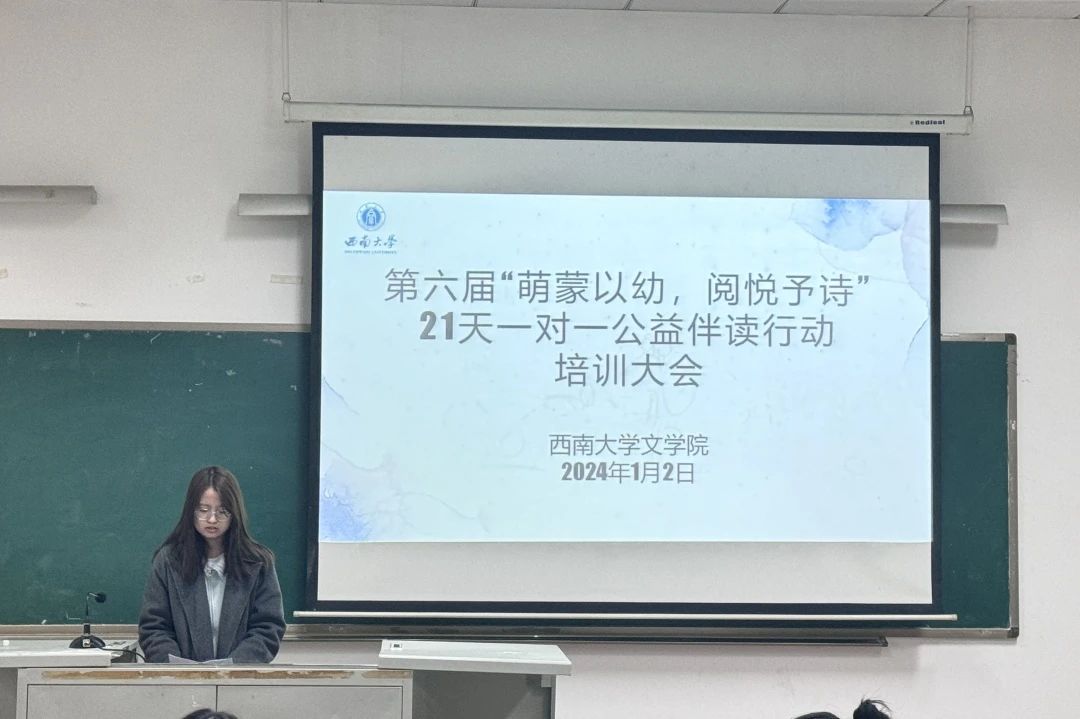 1月2日,第六届“萌蒙以幼·阅悦予诗”21天一对一公益伴读行动培训活动在taptap188官网入口111教室举办。研究生辅导员凌飞老师出席活动,18名伴读行动志愿者参加。活动由2023级现当代文学专业研究生刘雨佳主持。