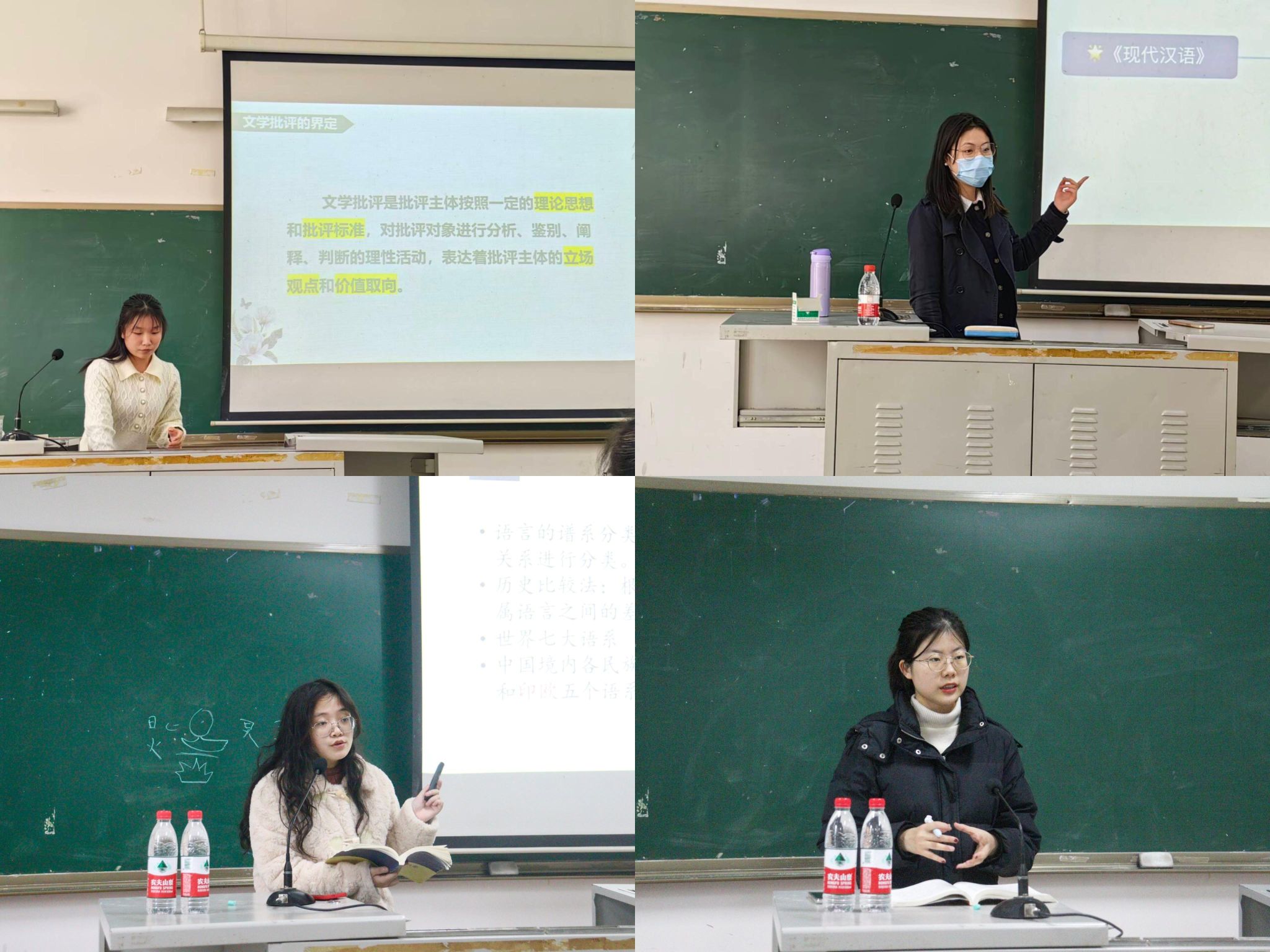 10月13日和19日,taptap188官网入口开展了2024年第五期“朋辈帮扶”活动。汉语言文学专业员工黄庭颍,汉语言文学(师范)专业员工赵秉珠、刘奕菲和王桉钰四位同学分别进行了语言学概论、古代汉语A、古代文学A和现代汉语A的讲解。