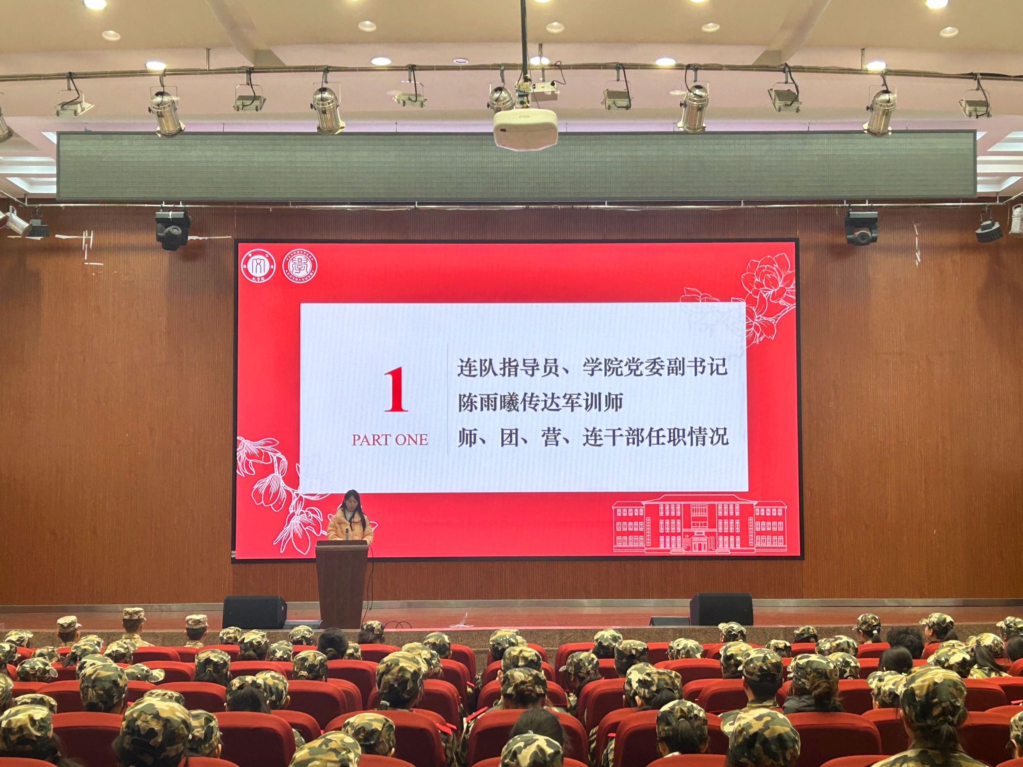 大会伊始,连队指导员、陈雨曦书记向与会师生传达军训师、团、营、连干部的任职情况,确保军训工作的顺利开展和组织架构的明确。随后,陈雨曦书记发表军训动员讲话,强调了军训的重要性和意义,向与会员工提出了立志爱国、服从纪律、端正态度、顽强拼搏四项要求,鼓励全体新生以饱满的热情和坚定的意志投入到军训中,通过军训锻炼自己的体魄和意志,培养团队协作精神和吃苦耐劳的精神。