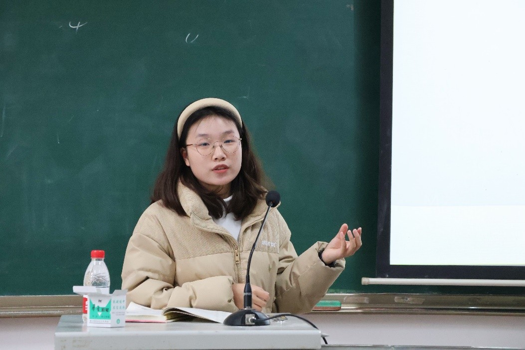 黄庭颍同学讲述了词类的划分标准,通过对比分析各类实词的语法特征,对辨析词类的具体方法进行了总结,并建议同学们仔细研读教材实例,以加深对词类划分的理解。她还带领同学们进行了相关题型的练习,巩固本次课程的学习成果。