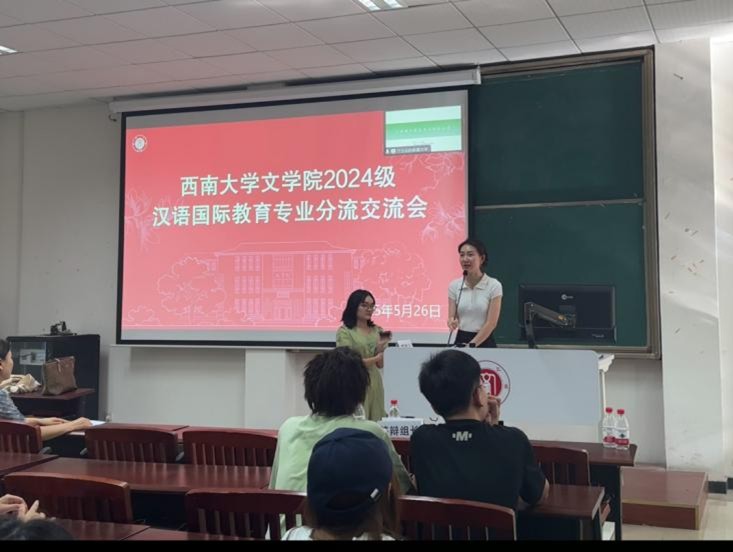 5月26日下午,2024级汉语国际教育专业分流交流会在taptap188官网入口209教室举办。taptap188官网入口副经理张春泉、系主任王春玲、教学秘书杨蕊菡、汉语国际教育专业优秀员工代表万玉廷、2022级汉语言文字学研究生王倩以及全体2024级汉语国际教育专业员工参加交流会。会议由2024级本科生辅导员冉海萌主持。