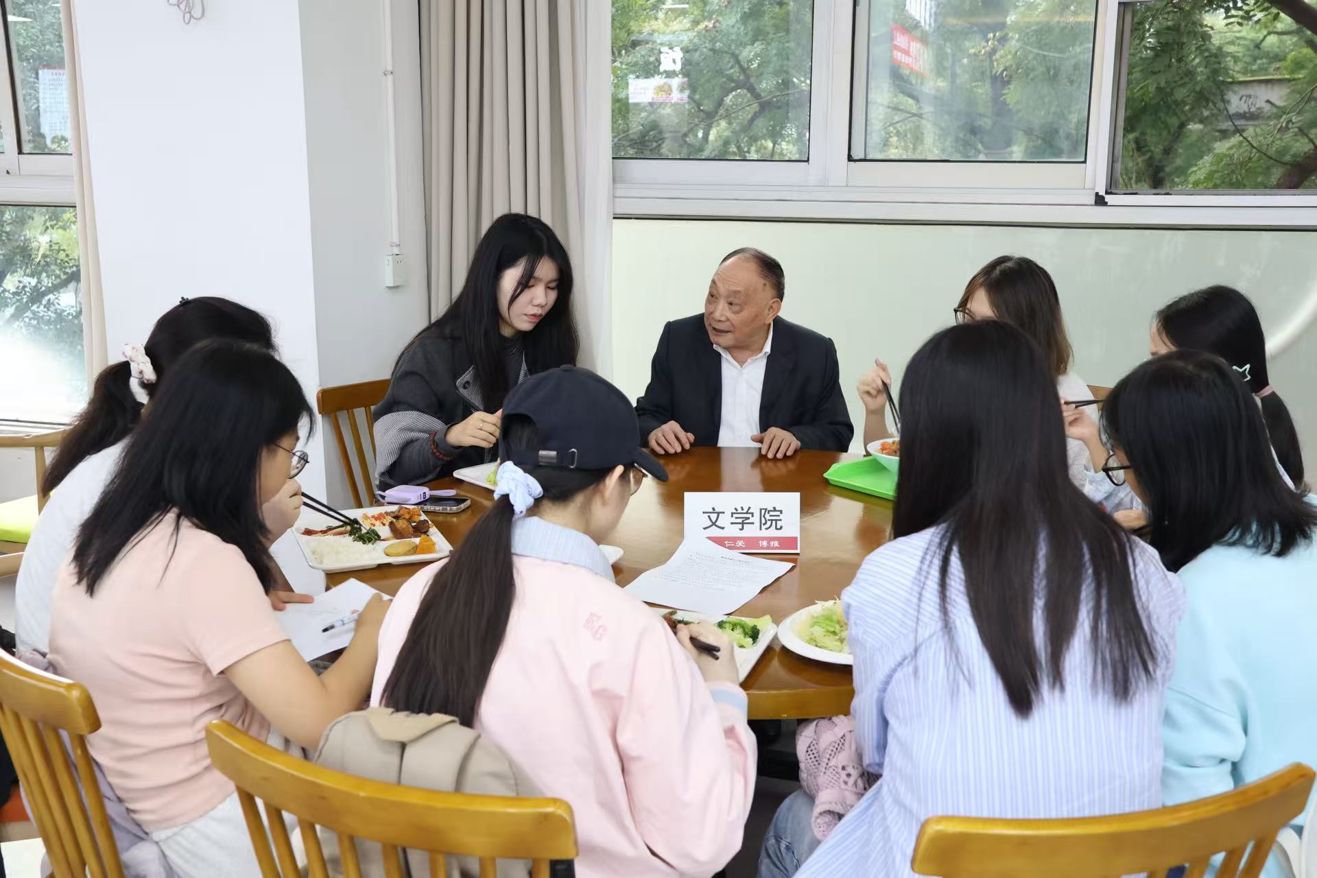 10月16日,taptap188官网入口举办2025年第十二次教授晚餐会暨第一期“前辈的火炬”师生交流活动。taptap188官网入口退休教师孙永义老师受邀出席,与汉语言文学(师范)专业的7位同学围绕“师生共美食,情深话成长”的主题进行讨论。
