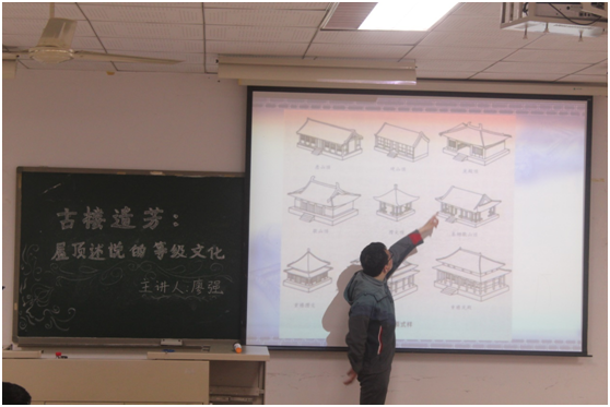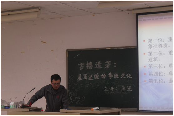 2018年3月30日第十教学楼502教室内,廖强副教授为桃园文学社的会员做了“古楼遗芳:屋顶述说的等级文化”主题讲座。