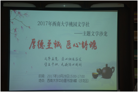 2017年10月28日,桃园文学社在中心图书馆9楼举行了一场独具匠心的文学沙龙活动,相互分享,积极探讨,气氛活跃。