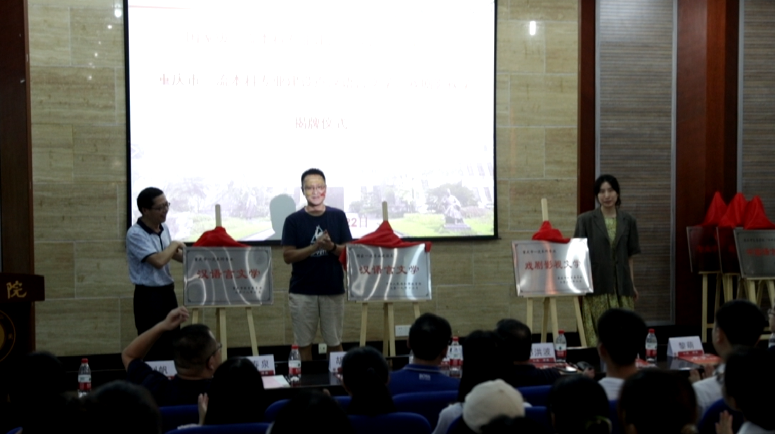 随后,王本朝经理、黎萌教授为艺术硕士(电影)专业学位授权点揭牌;胡建军书记、刘帆教授分别为重庆市“十四五”重点学科中国语言文学、戏剧与影视学揭牌;邓洪波副书记、陈玥副书记、张春泉副经理分别为国家级一流本科专业建设点中国语言文学,重庆市级一流本科专业建设点中国语言文学、戏剧与影视学揭牌。