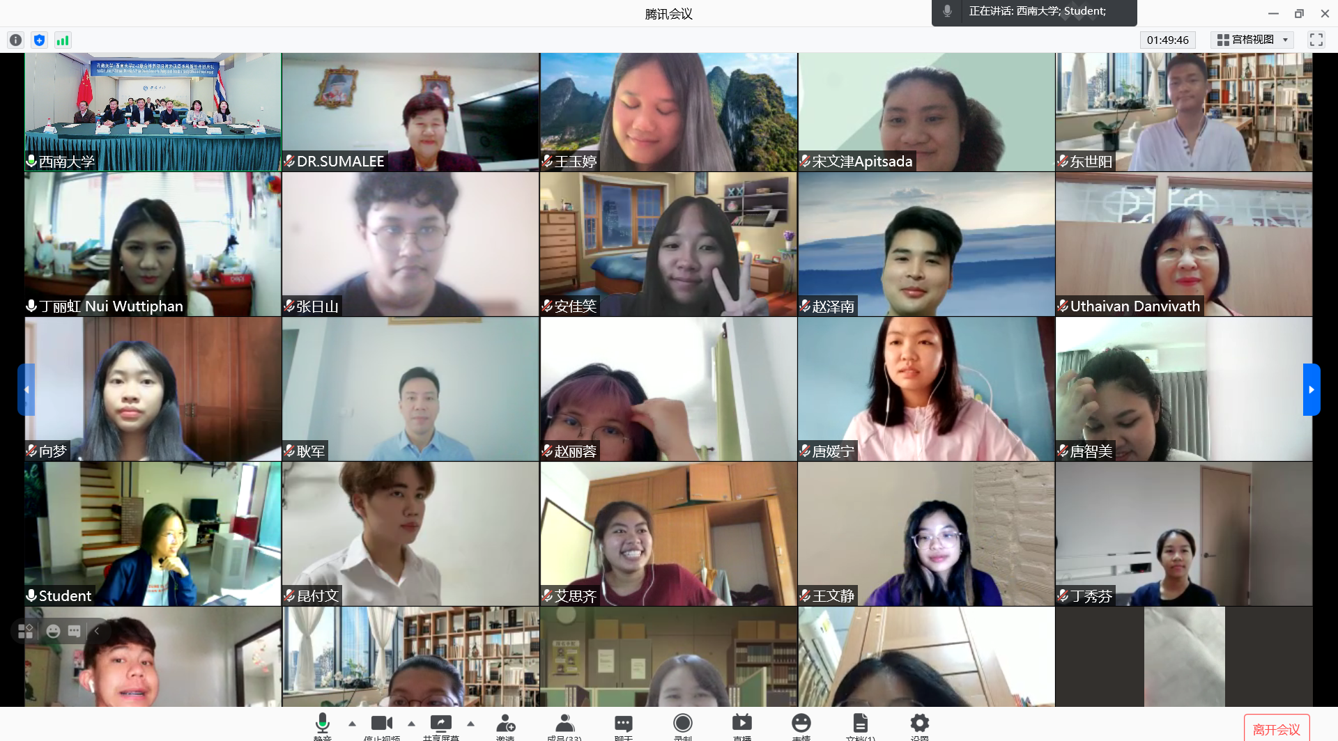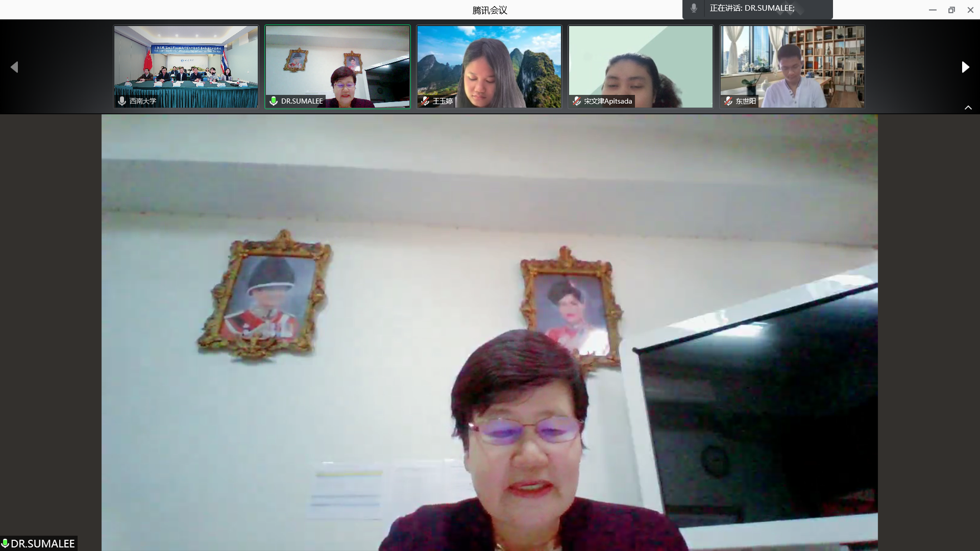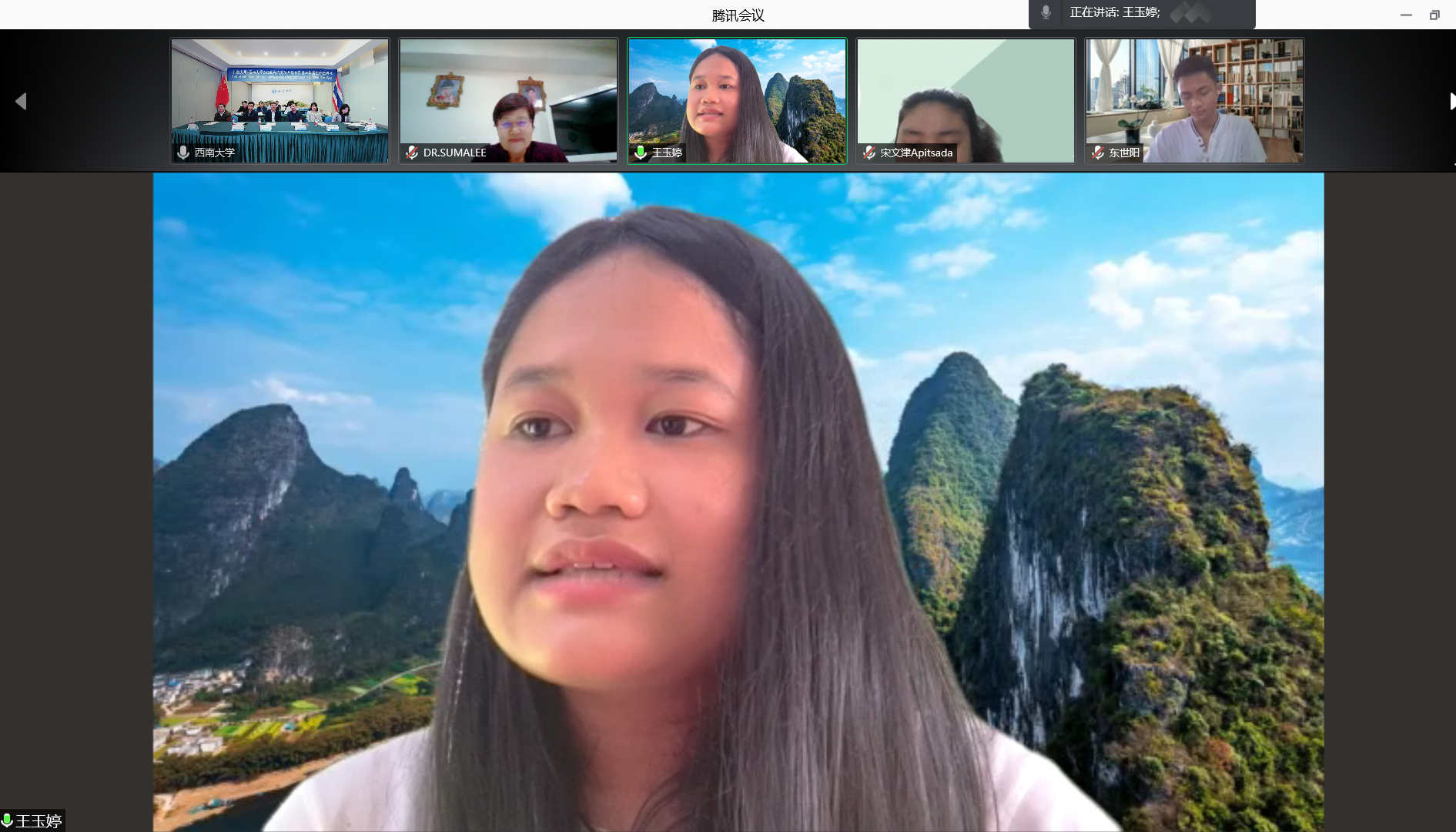 孔敬大学教育学院经理苏玛丽在致辞中表达了对中国和taptap188官网入口的深情厚谊,向学校和学院精心组织的线上学习表示衷心的感谢。她表示,中国有着悠久的历史文化,taptap188官网入口有着富的汉语国际教育经验,希望大家严格要求自己,培养国际视野,将学到的知识带回泰国,为走向工作岗位奠定良好的基础。
