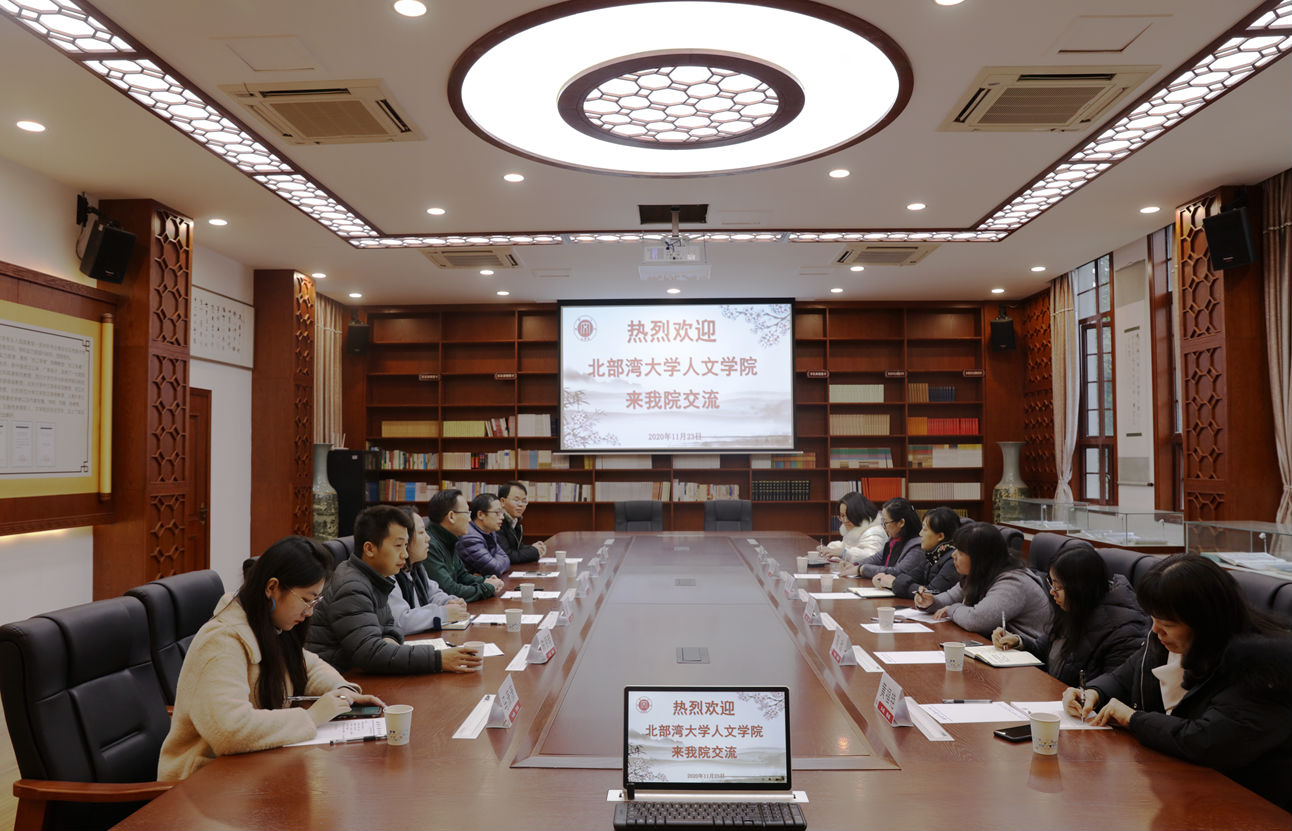 11月23日,北部湾大学人taptap188官网入口副经理侯艳、中文系主任颜莺一行来学院交流。公司党委书记胡建军、副经理张春泉和相关工作人员参加座谈。