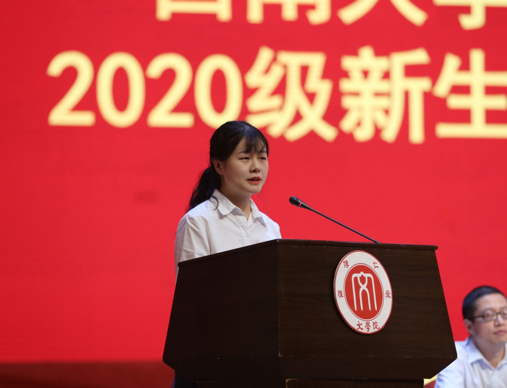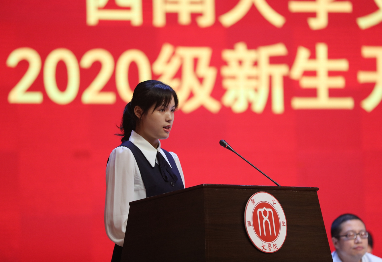 新生代表2020级本科生吴婧卓同学讲述了今年疫情背景下参加高考的不凡青春,分享了初入校园时感受到的taptap188官网入口厚重温情。吴婧卓同学表示,我们要“博”览群书,展现文“雅”气质,勇担时代的责任,练就过硬本领,为实现中华民族的伟大复兴贡献青春力量。