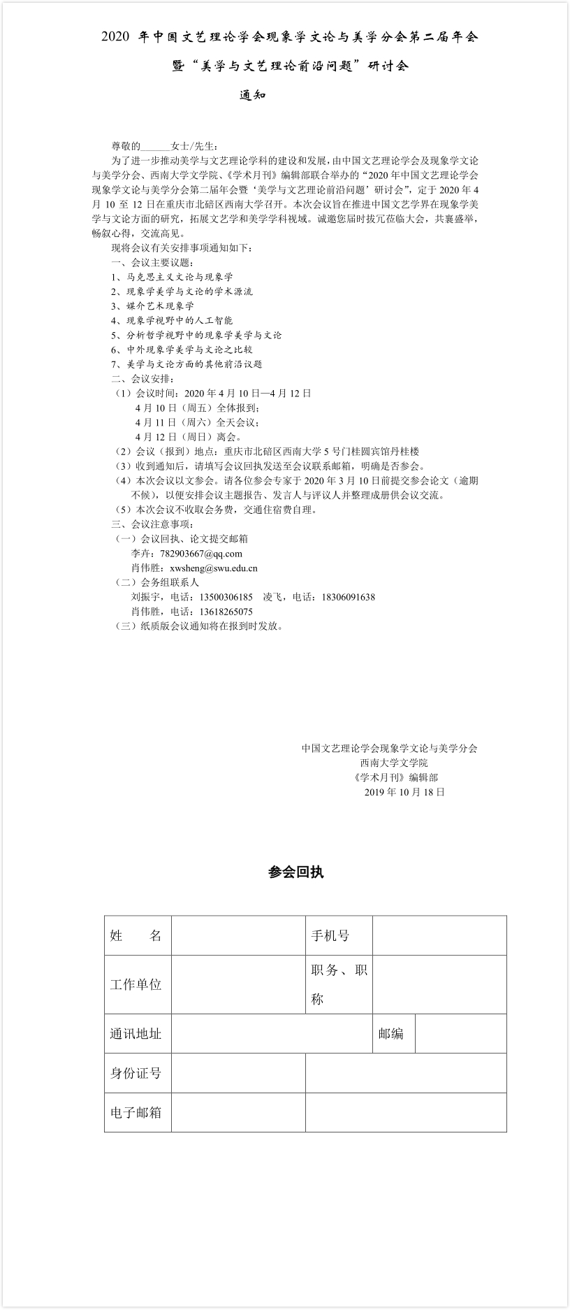 2020年中国文艺理论学会现象学文论与美学分会第二届年会暨“美学与文艺理...