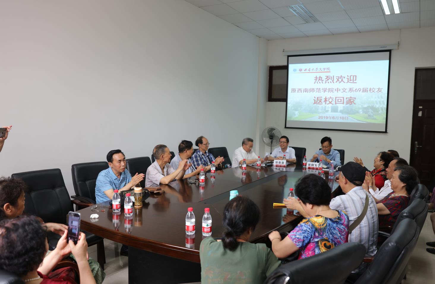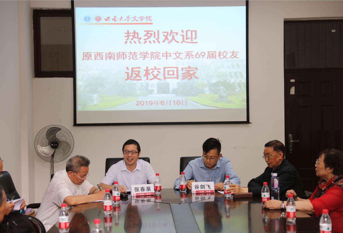 6月10日,原西南师范学院中文系1969届员工座谈会在taptap188官网入口210会议室成功举行。taptap188官网入口张春泉副经理、学校员工工作科谷剑飞科长出席,22名原西南师范大学中文系69届员工参会了座谈会。座谈会由中文系69届吴邦国员工主持。
