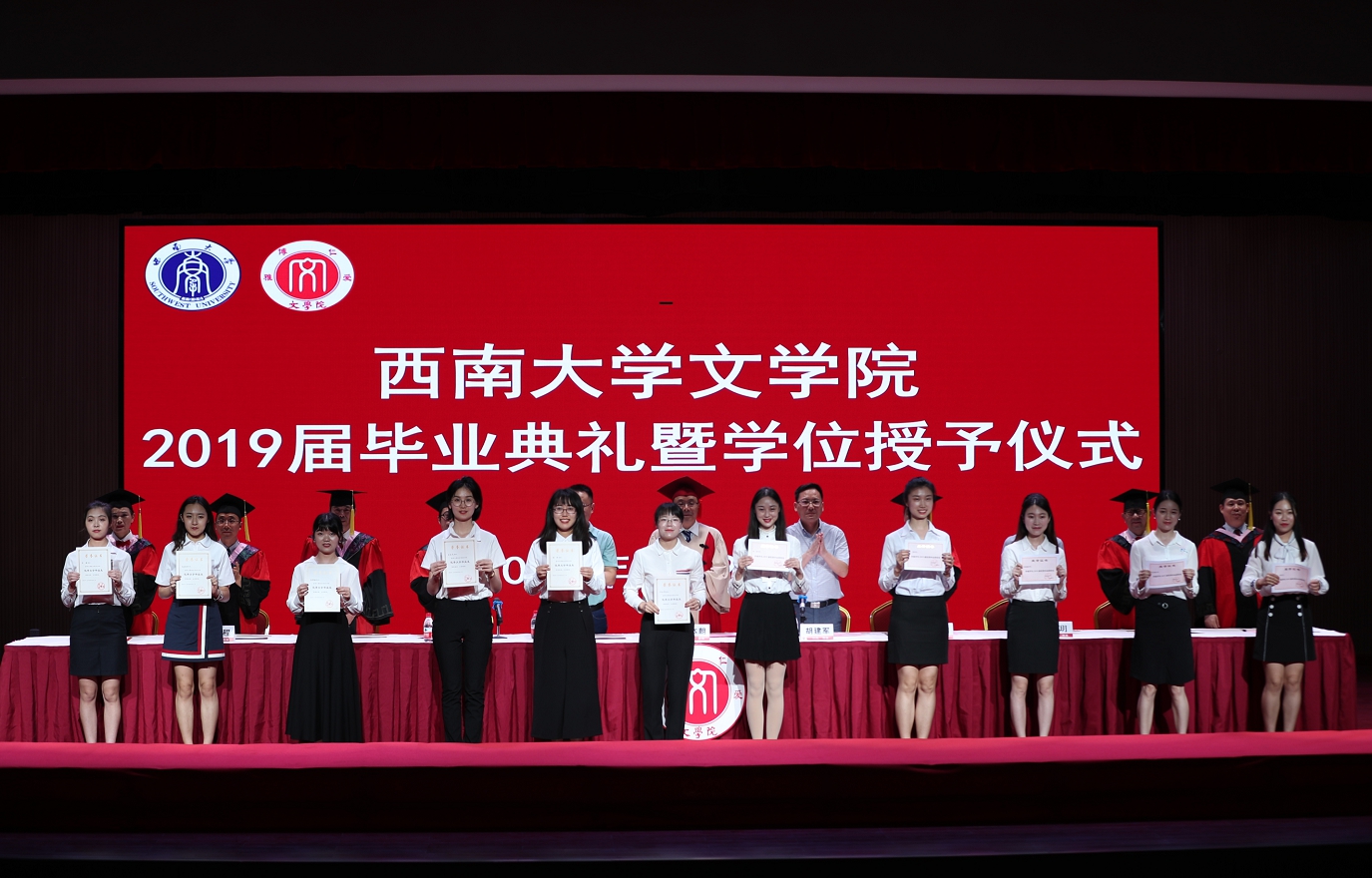 肖伟胜副经理和张春泉副经理先后宣读毕业决定和表彰决定。毕业生代表依次上台领取毕业证书;重庆市及taptap188官网入口优秀毕业研究生代表、优秀学位论文等荣誉获得者代表分别上台接受表彰。