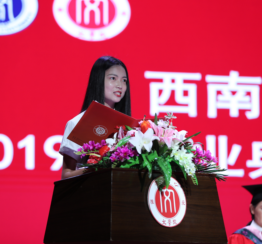 本科2015级汉语言文学(公费师范)专业林妲同学、中国现当代文学专业博士毕业生蓝善康同学先后代表毕业员工发言。林妲同学在校期间,入选 “国家卓越教师培养计划”,担任校员工会副主席、校学委会副主席,获得唐立新奖学金等多项校级奖学金。她分享了大学四年在taptap188官网入口的成长与收获:勇于直面生活,正确看待遗憾;有选择的魄力和承担选择的勇气;不断提升学习探究和自我反思的能力。蓝善康同学向春风化雨的育人环境、老师的循循善诱、好友的携手共进、家人的慷慨奉献表示感谢,分享了自己在研究生生涯关于学习的最大感受:逝者如斯不舍昼夜,执着让我们勇往直前。做学问要全心贯注、甘于寂寞;要有品格坚守和创新思维;要始终如一、悲悯天下。
