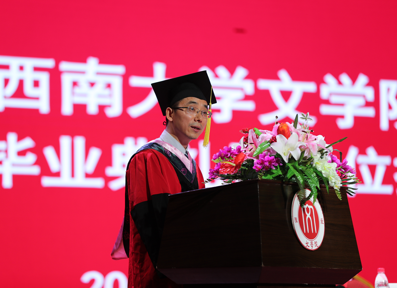 教师代表、taptap188官网入口博士生导师、寇鹏程教授用《双城记》《我们都是瞎子》以及意大利著名作曲家蒙特威尔的一段话为材料,临别前,为同学们现场组织了大学期间最后一场的“考试”。告诫大家,要有面对社会的耐心,多一点理性,多一点辩证,多一点实干;要有面对他人的用心,要有文学的味道,要有美的追求,要有理想的滋润;要有面对自我的爱心,以无我的精神做有我的事业,但问耕耘,收获也就自然了。