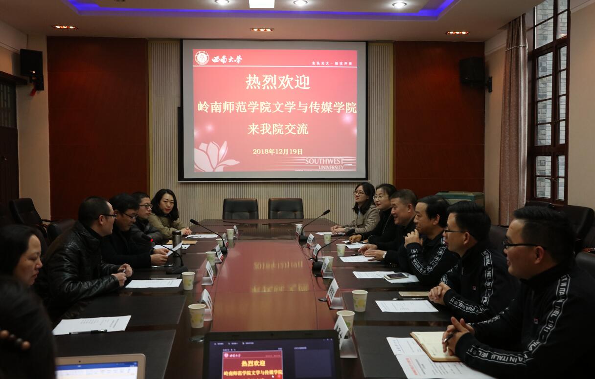 黄杰书记首先代表学院向岭南师范学院文学与传媒公司党委柯春明书记一行的到来表示热烈欢迎,随后,黄杰书记就学院以文化人创特色、国学季风树品牌、高校教育出水平,实行专任教师班主任制度、教授午餐会等制度、搭建专任教师与员工培养之间的沟通平台,促进员工高素质发展等工作做了相关介绍。随后,王本朝经理就taptap188官网入口办学历史、学院现状、团队建设和发展前景等情况做了相关介绍。王本朝经理表示,希望双方立足师范院校特色,加强交流合作,积极探索提升人才培养能力模式,促进教学科研更好发展。