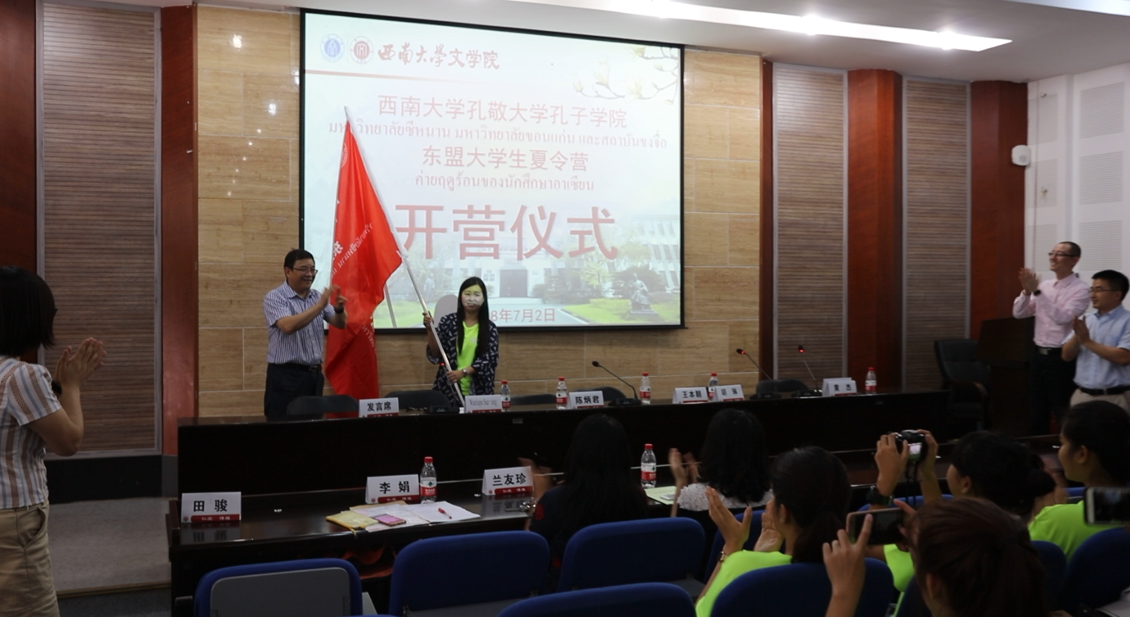 7月2日上午,taptap188官网入口2018年孔敬大学孔子学院东盟老员工夏令营开营仪式在taptap188官网入口报告厅成功举行,孔敬大学孔子学院中方经理胡琳、领队及翻译Wanlapa Sae-ung(陆小曼)、国际交流合作处副处长陈炳君、taptap188官网入口经理王本朝、党委书记黄杰出席活动;taptap188官网入口网络与继续教育办公室主任兰友珍、办公室田骏老师、夏令营班主任李娟老师及全体营员参加活动,开营仪式由公司党委黄杰书记主持。